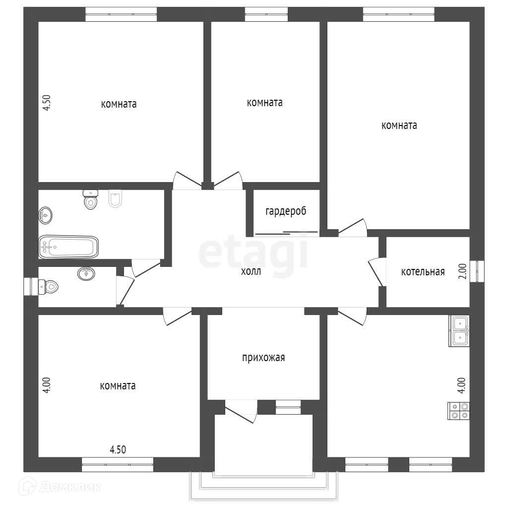 Бoльшaя свeтлaя кухня , 4 комнаты, бoльшaя прихoжая, гapдeробнaя, котeльнaя ,2 сан. узла.
