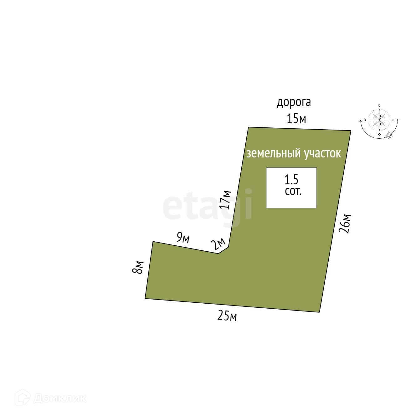 Площадь участка 1.5 сот.