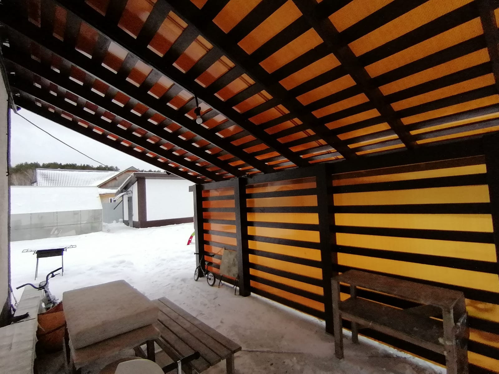 Новая баня на дровах 24 кв.м. с навесом