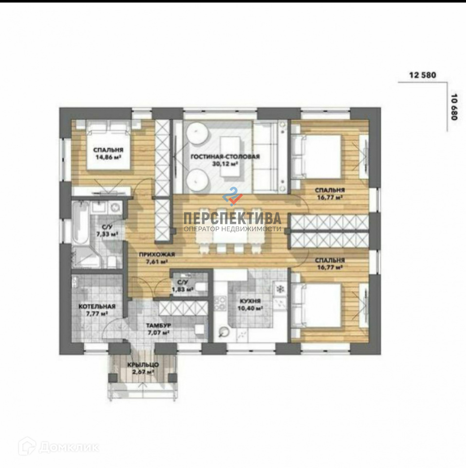- 3 просторные спальни, в них каждый может создать свой уютный интерьер, вместить все необходимое.