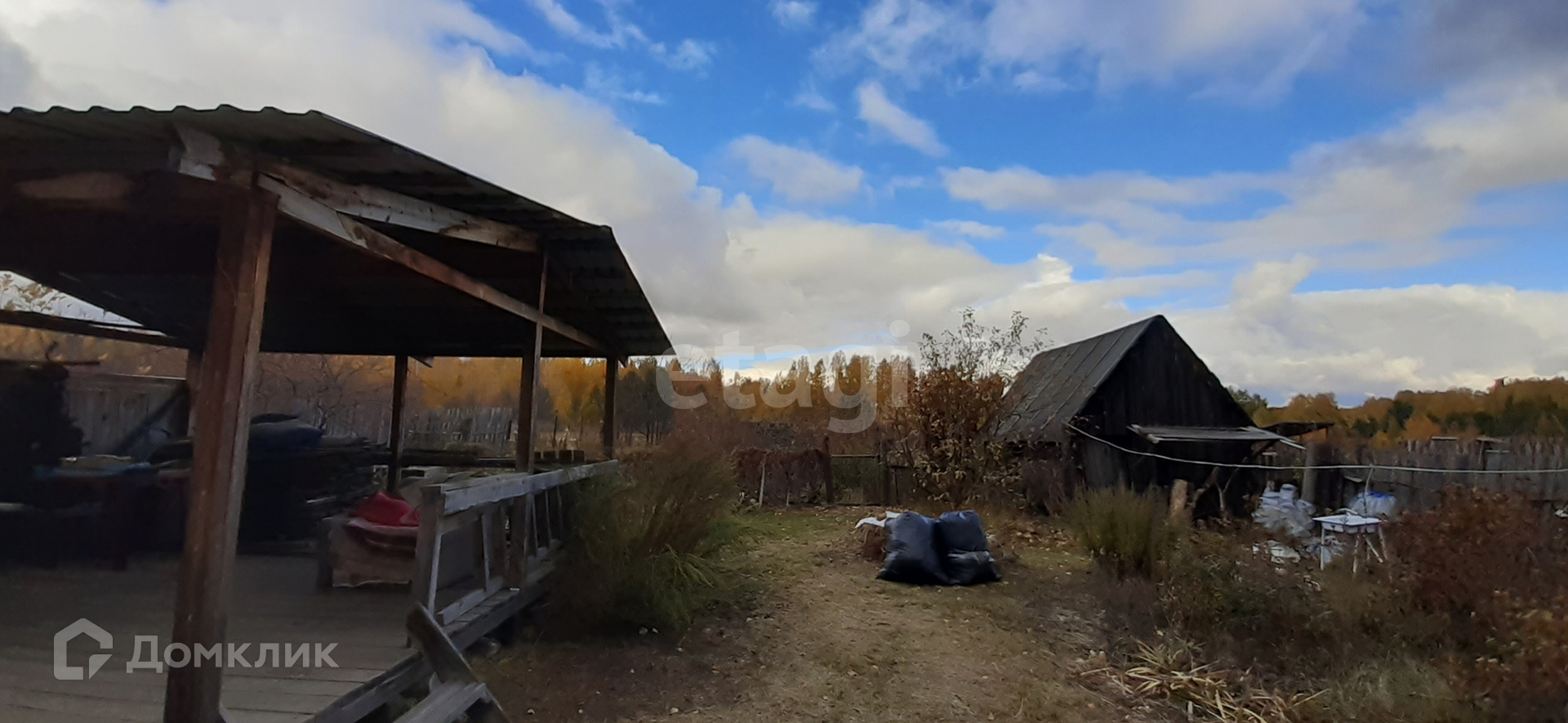 Есть большая беседка и дровенник.