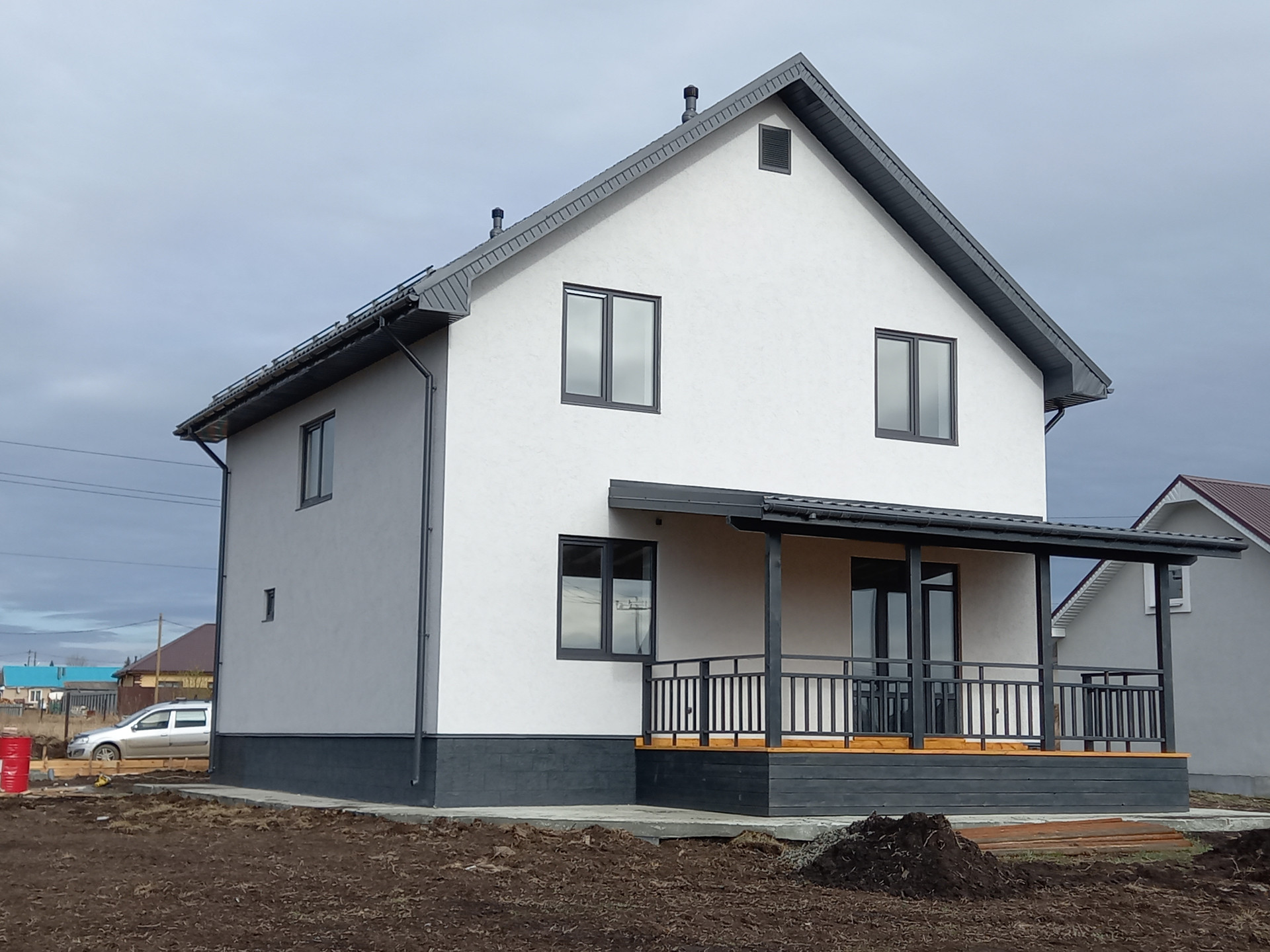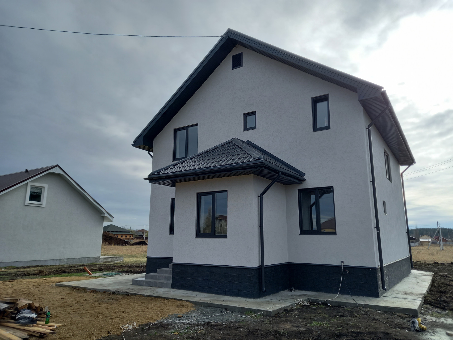 - Крыша металлочерепица, выполнены водостоки, вентиляция, отмостка