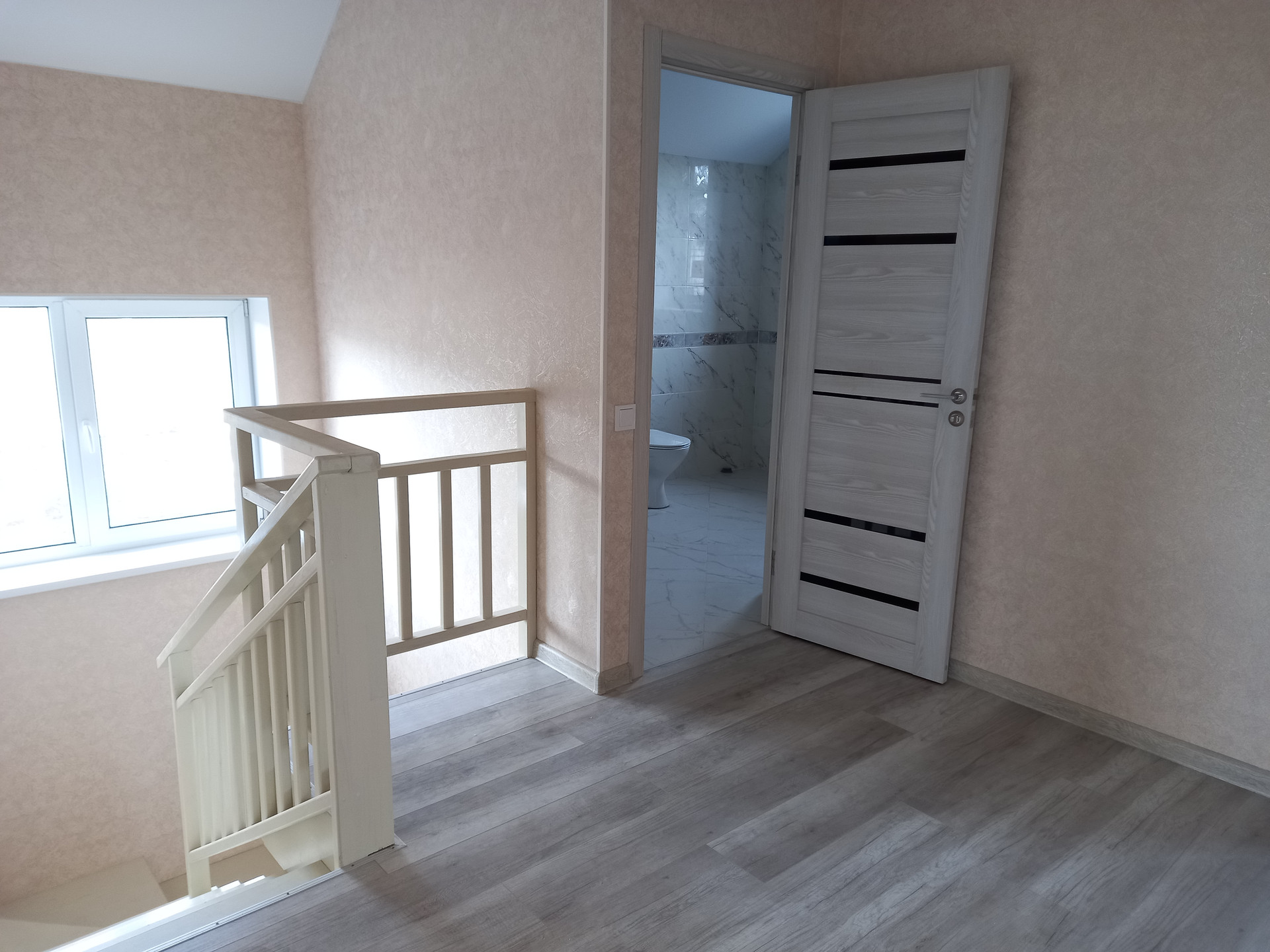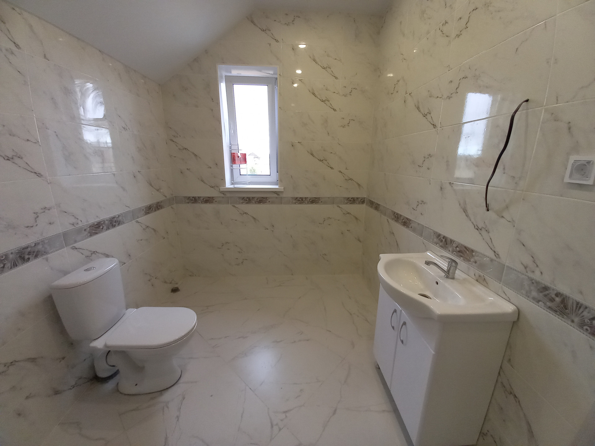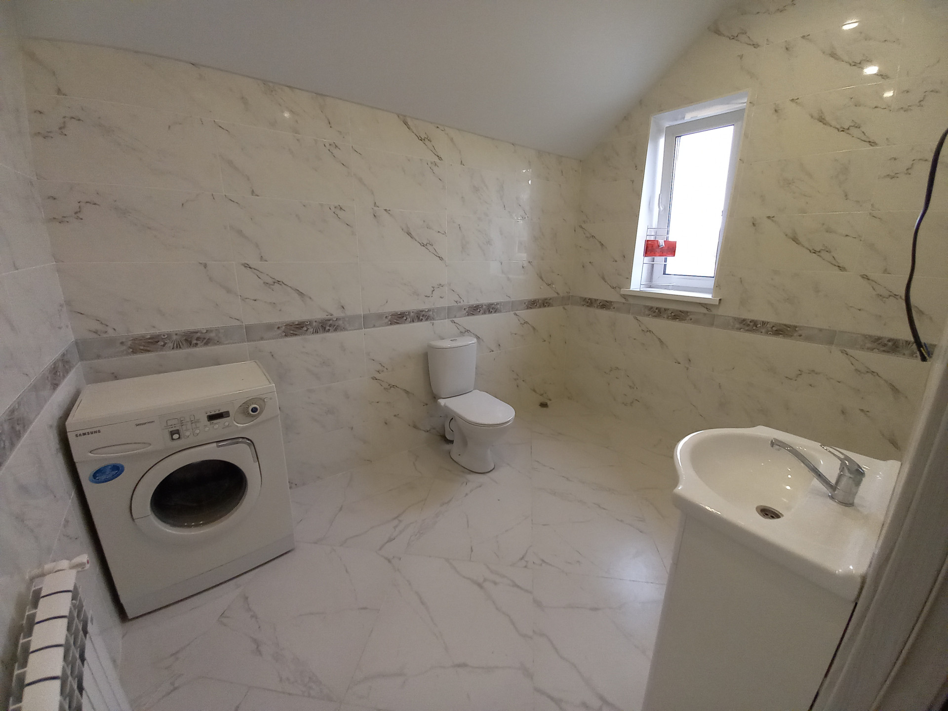 - большая ванная комната с окном и сантехникой.