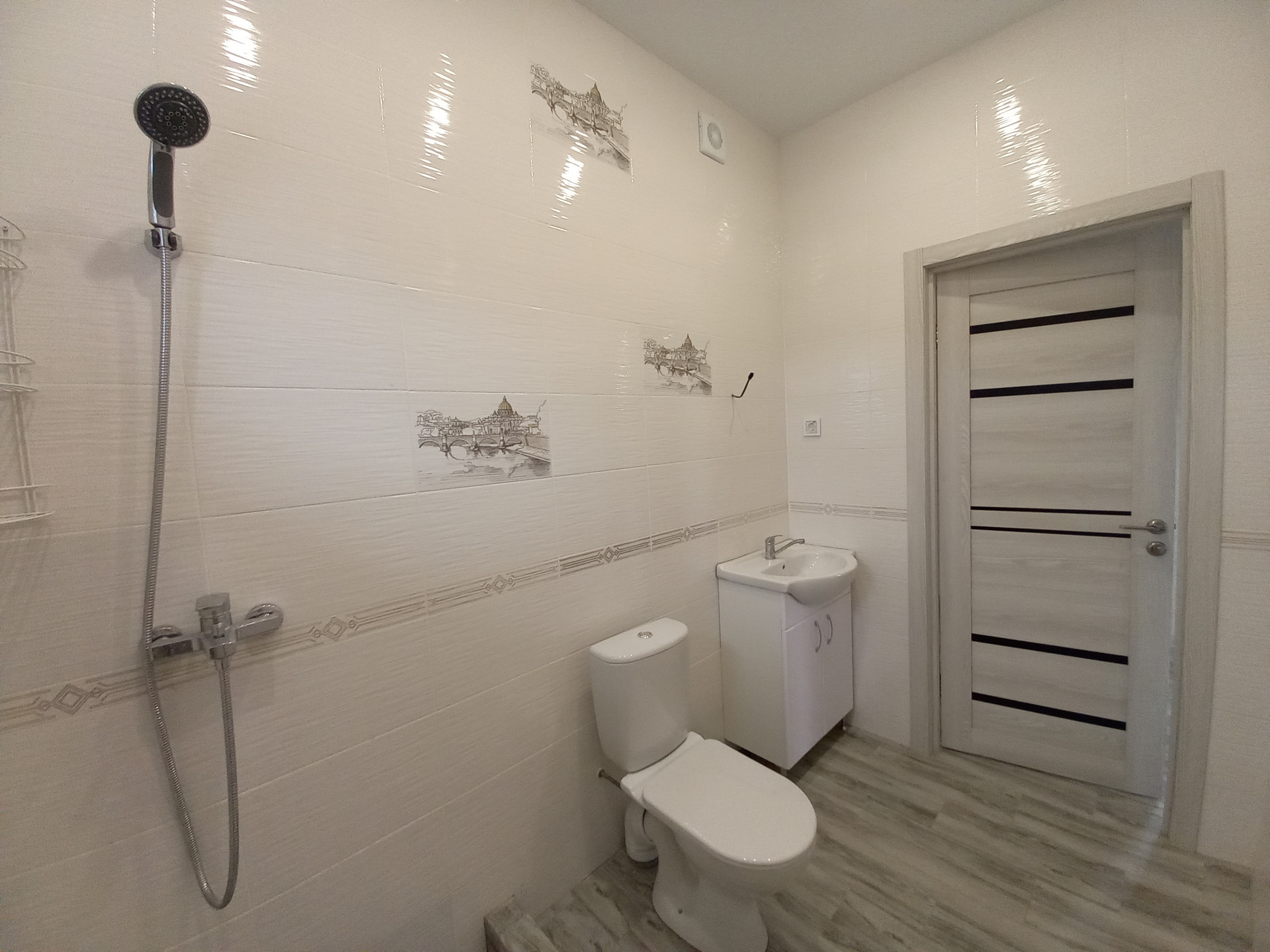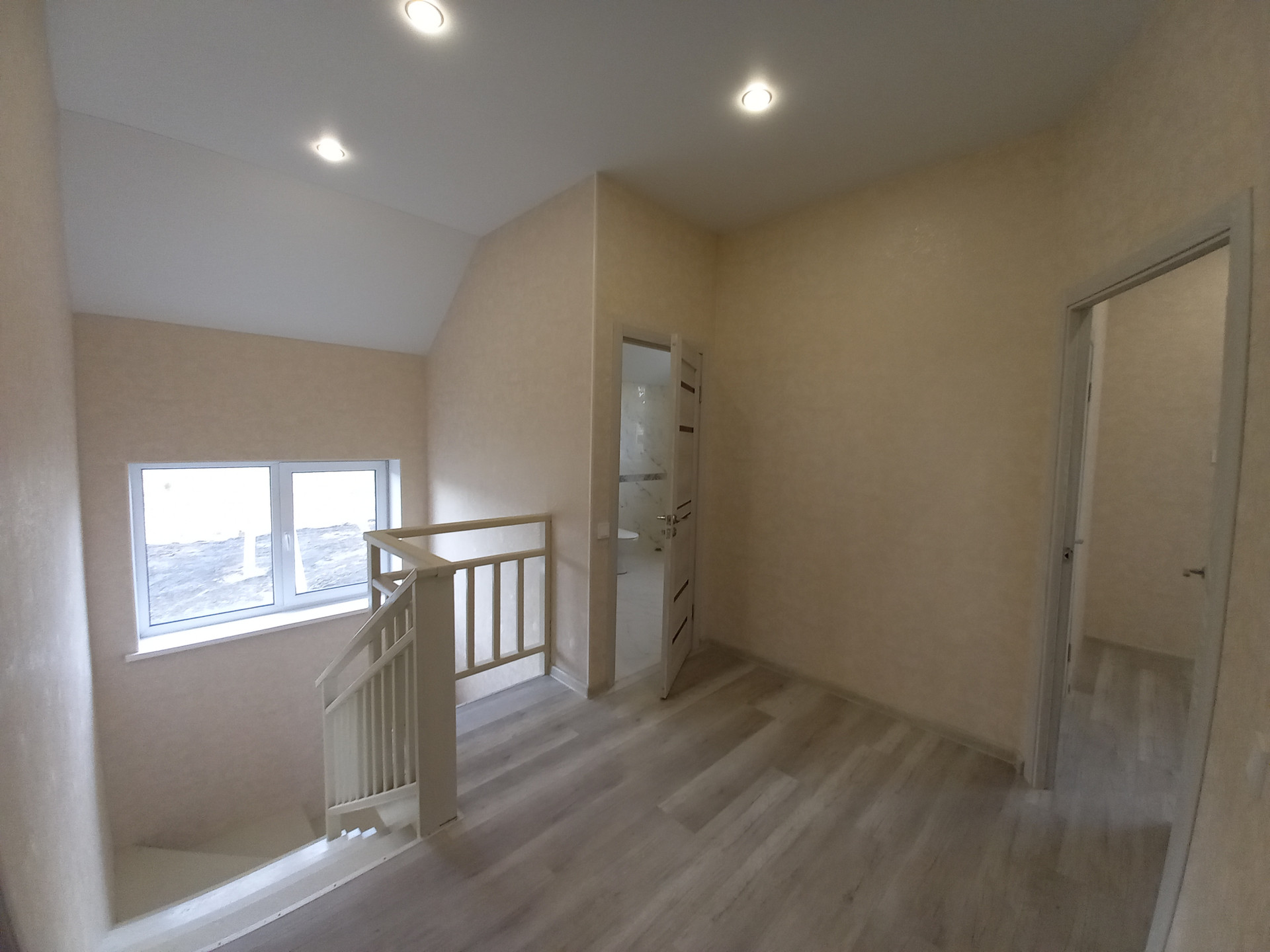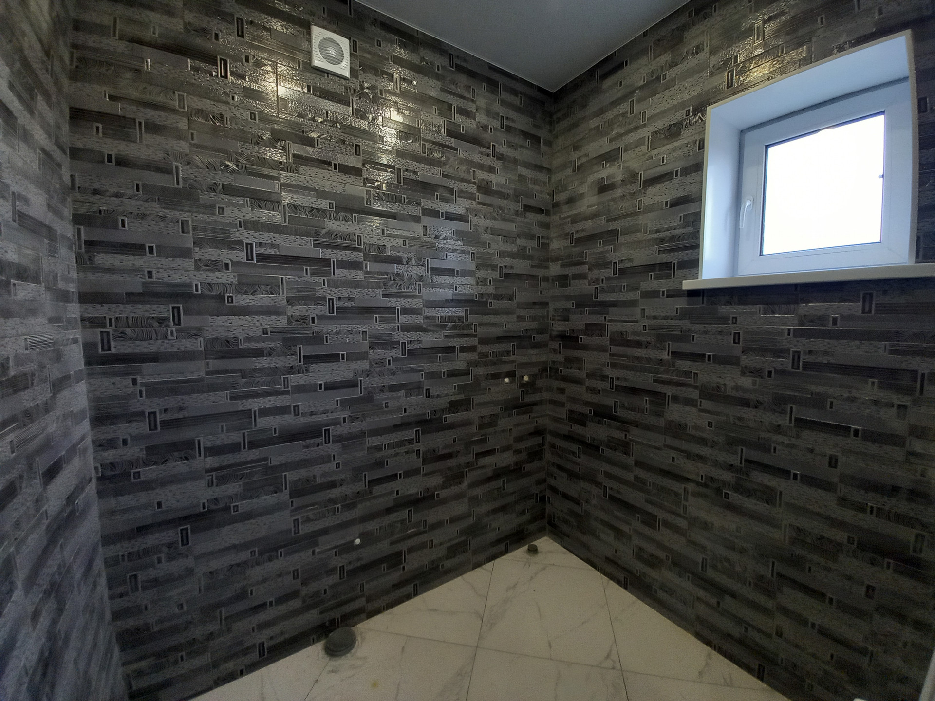 - большая ванная комната с окном и сантехникой.