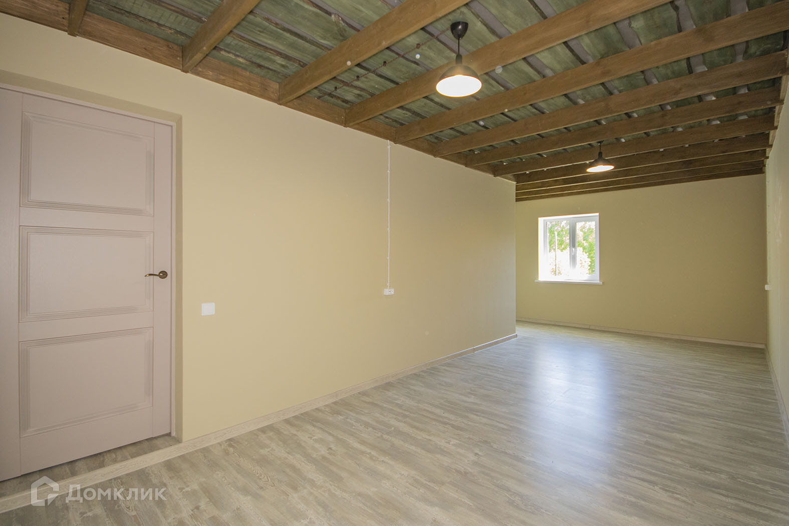 Первый этаж - кухня, гостиная, спальня (22 кв.м), санузел.