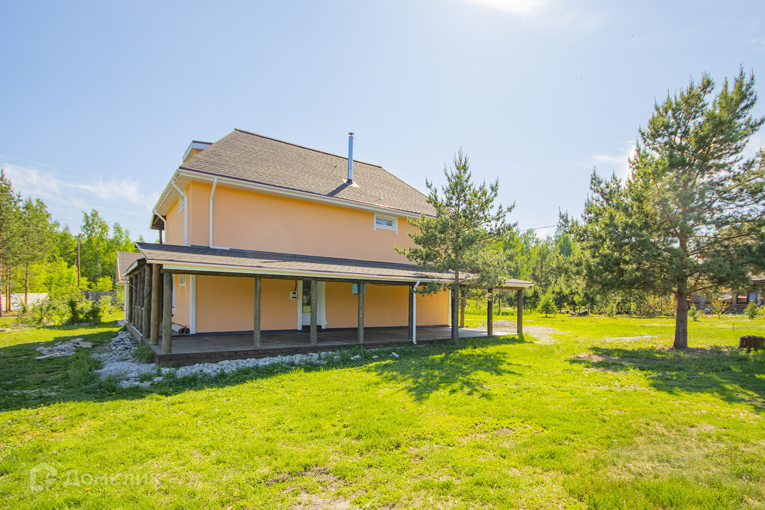 Дом расположен в посёлке Октябрьский, в составе известной Лунной Усадьбы Свердловской области, в окружении охотничьих угодий и уютных мест для рыбалки на озере.