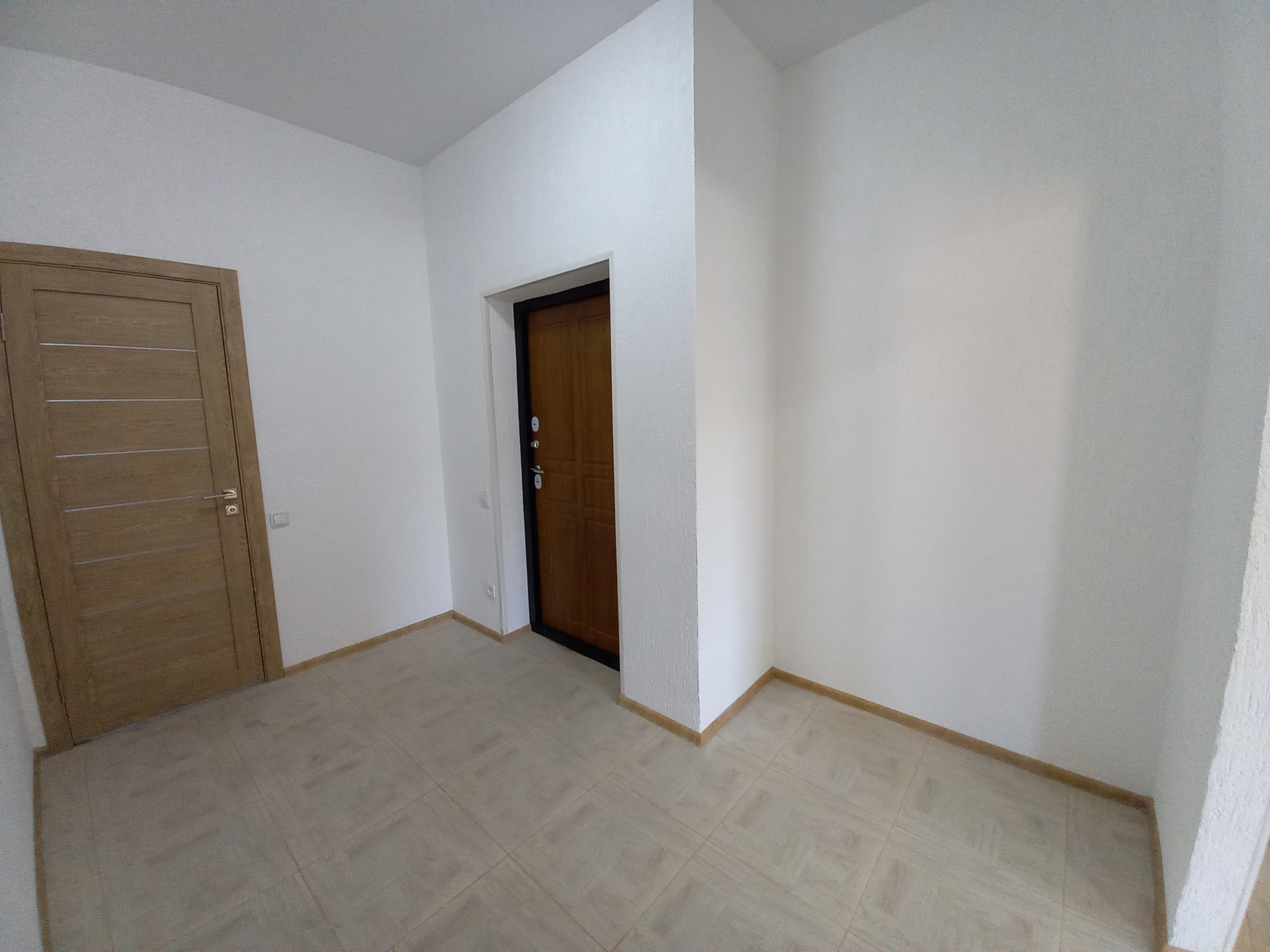 Просторная прихожая с нишей для встроенного шкафа.