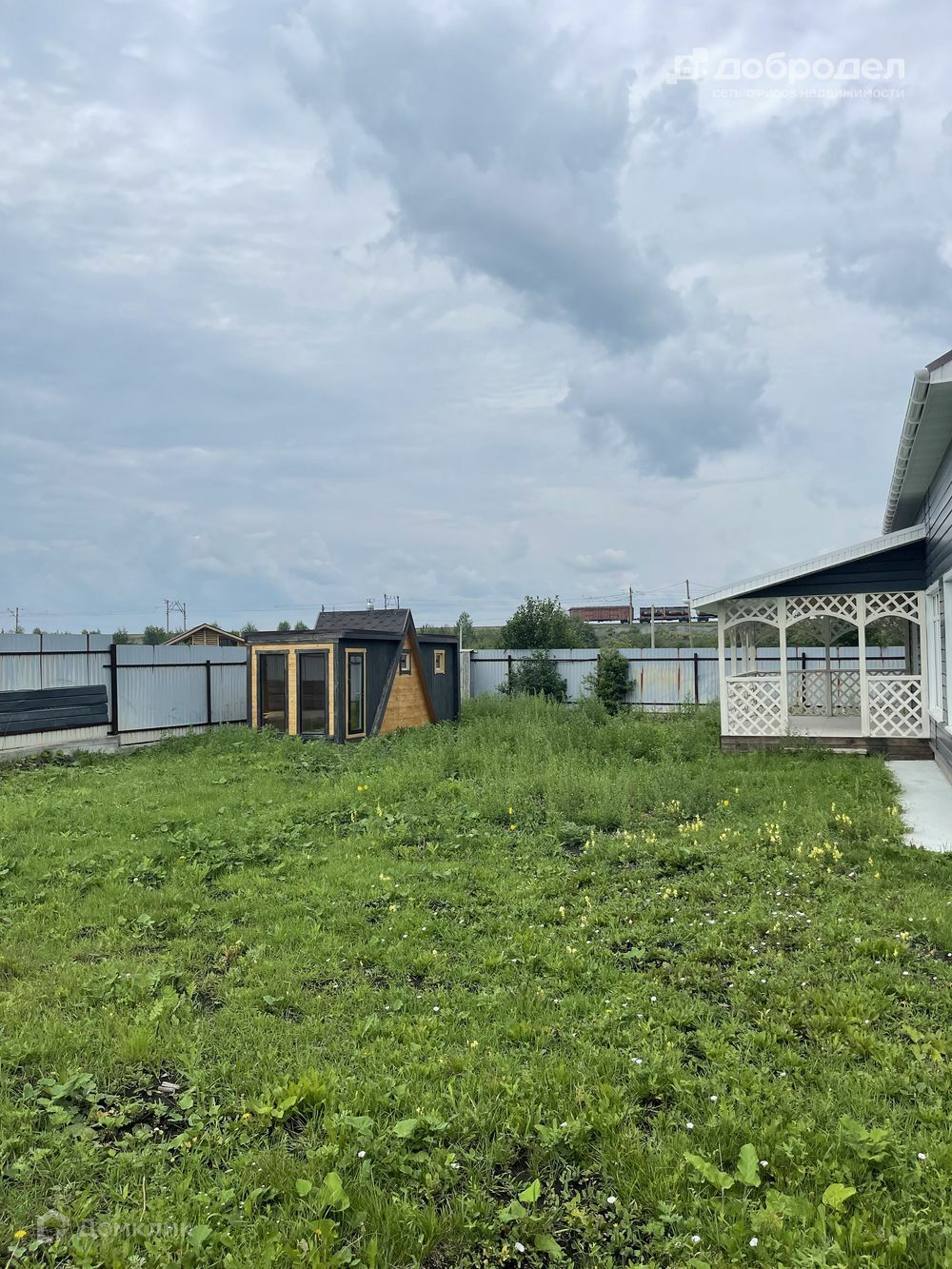 Выход на большую террасу , за террасой зона для отдыха .Лес, Баня