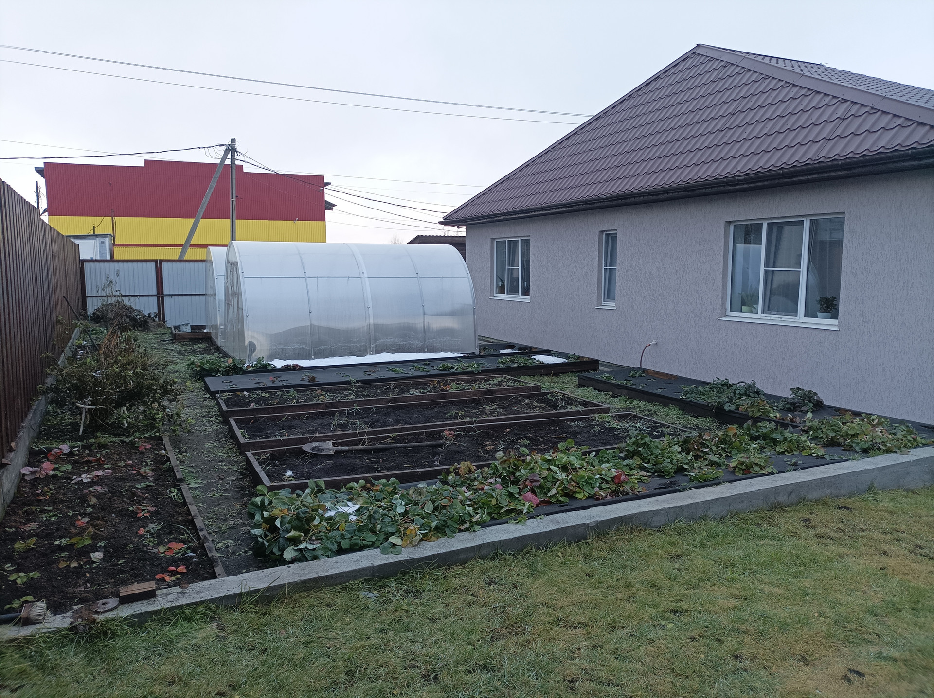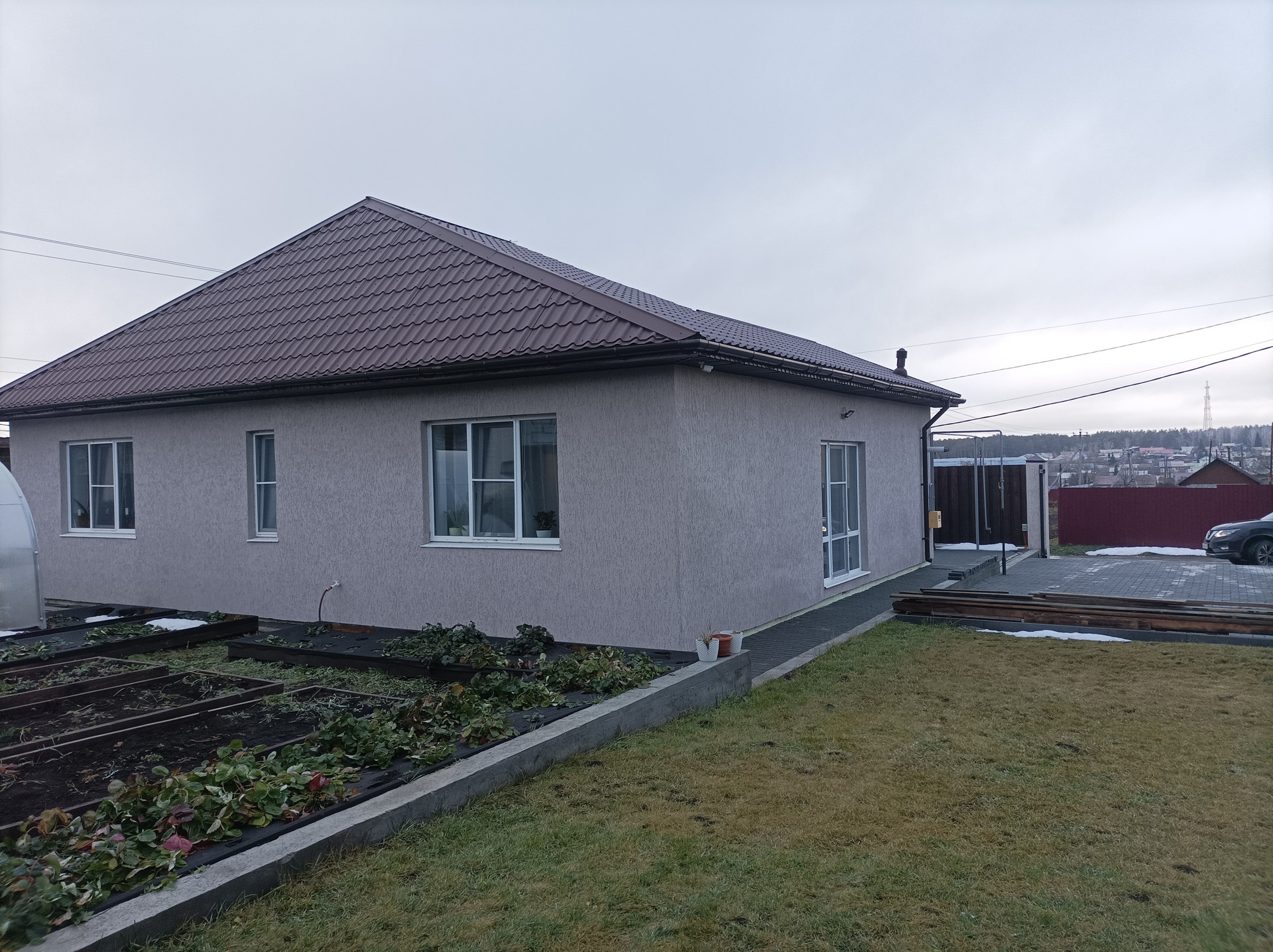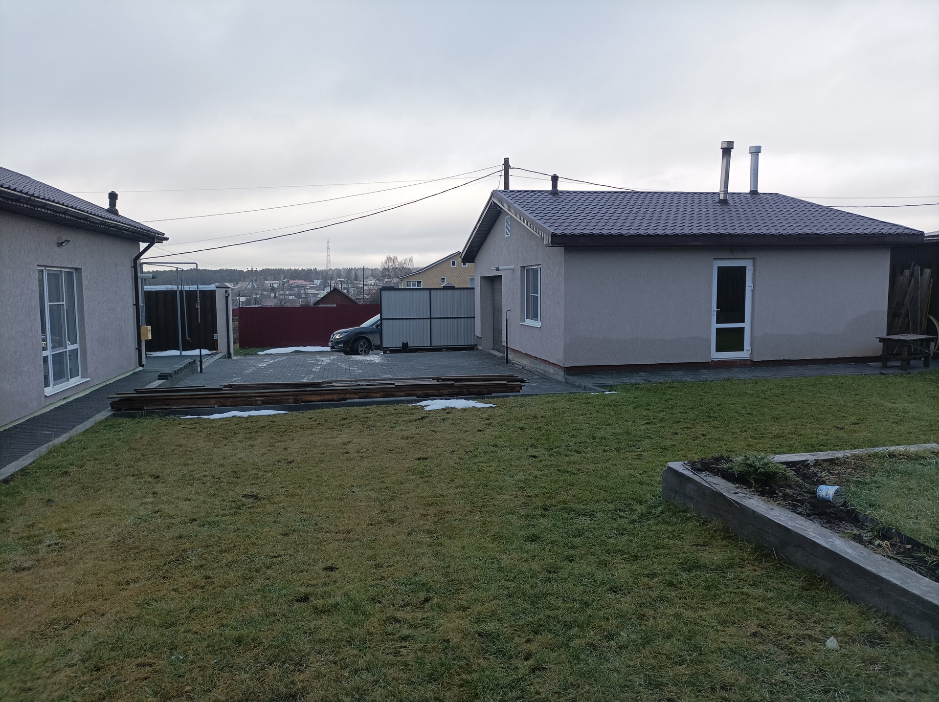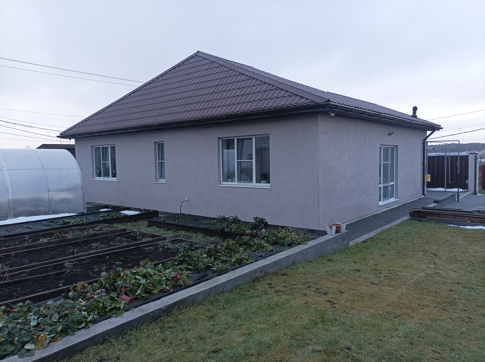 Этапы строительства: фундамент и коробка под крышу в 2018 году, коммуникации, внутренняя отделка и фасад дома в 2020 году, благоустройство и забор в 2021 году, гараж-баня в 2021-2023 г., фактическое проживание с 2020 года, проверено тремя зимами.