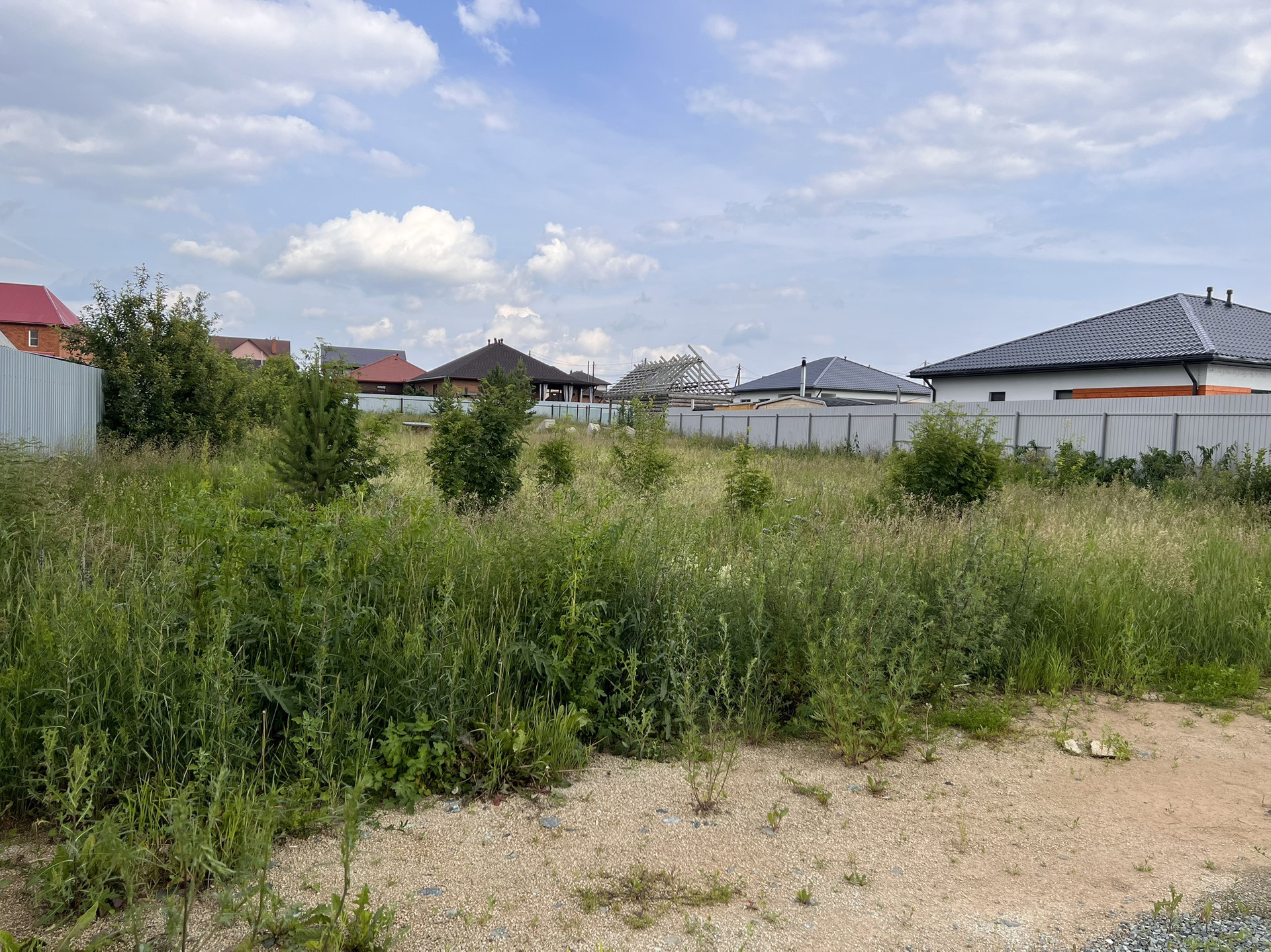 Участок находится на отдельной закрытой (тупиковой улице) на 6 домовладений, крайний, 5 домов уже построены. Соседи живут круглогодично. Улица освещена. Участок выше дороги. Огорожен с 3х сторон забором. Дорога до участка отсыпана щебнем.