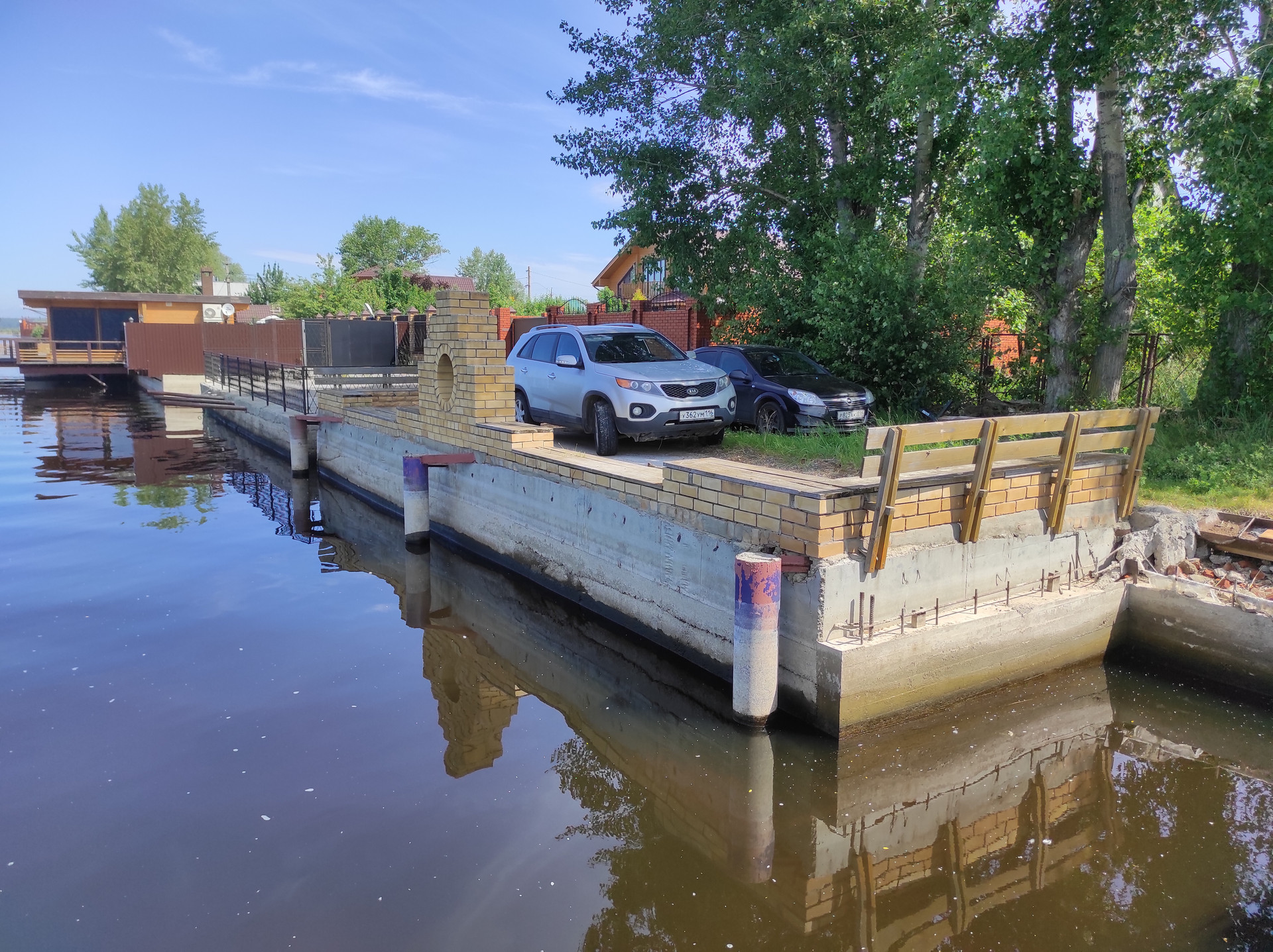 Благоустроенная прибрежная зона. Организован пирс для швартовки судов.