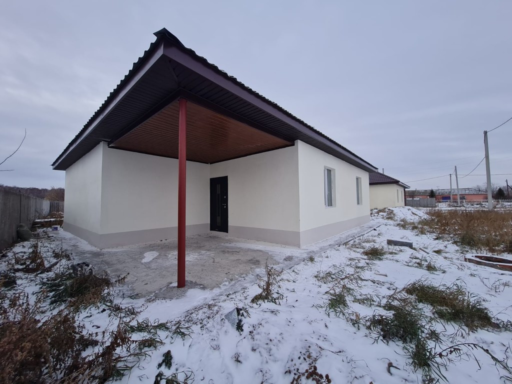 На чистой продаже отдельно стоящий благоустроенный дом, который подходит под любой вид ипотеки в том числе сельской под 3%. Общая площадь 100 кв.м., 9 соток земли-собственность, межевание. Материал стен керамзитоблоки с утеплителем 12 см. (плита базальт), фундамент ленточный заливка с арматурой пол-стяжка-бетон с пеноплексом смонтирован теплый пол от отопления подогрев за счет отопительного газового котла. Отопление газ стояк выведен-оплачен ввод, подключение газа. Котел 2-х контурный отопление, горячая вода. Вода в доме, выгребная яма 3 кольца по 1,5 м. Электричество 380. Крыша металлочерепица, есть возможность благоустроить второй этаж балки раскинуты под жилые комнаты. Окна ПВХ, металлическая входная дверь, участок ухожен огорожен забором. По всему периметру дома залита опалубка-бетонная стяжка. Есть варианты отделки под ключ рабочей бригадой продавца по привлекательной цене на любой ваш запрос. Подготовлен дизайн проект планировки дома, а так же много существенных бонусов для покупателя. Дорога поднята и отсыпана крошкой устойчивый проезд. Приглашаем на просмотр. Подробная информация по телефону.