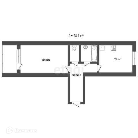 Общая площадь 38.7 м2
