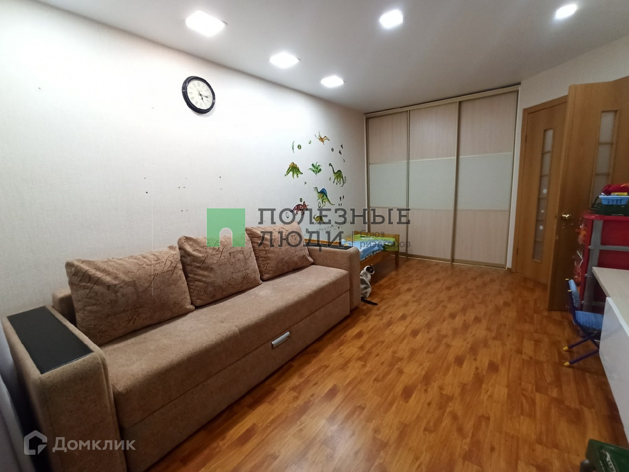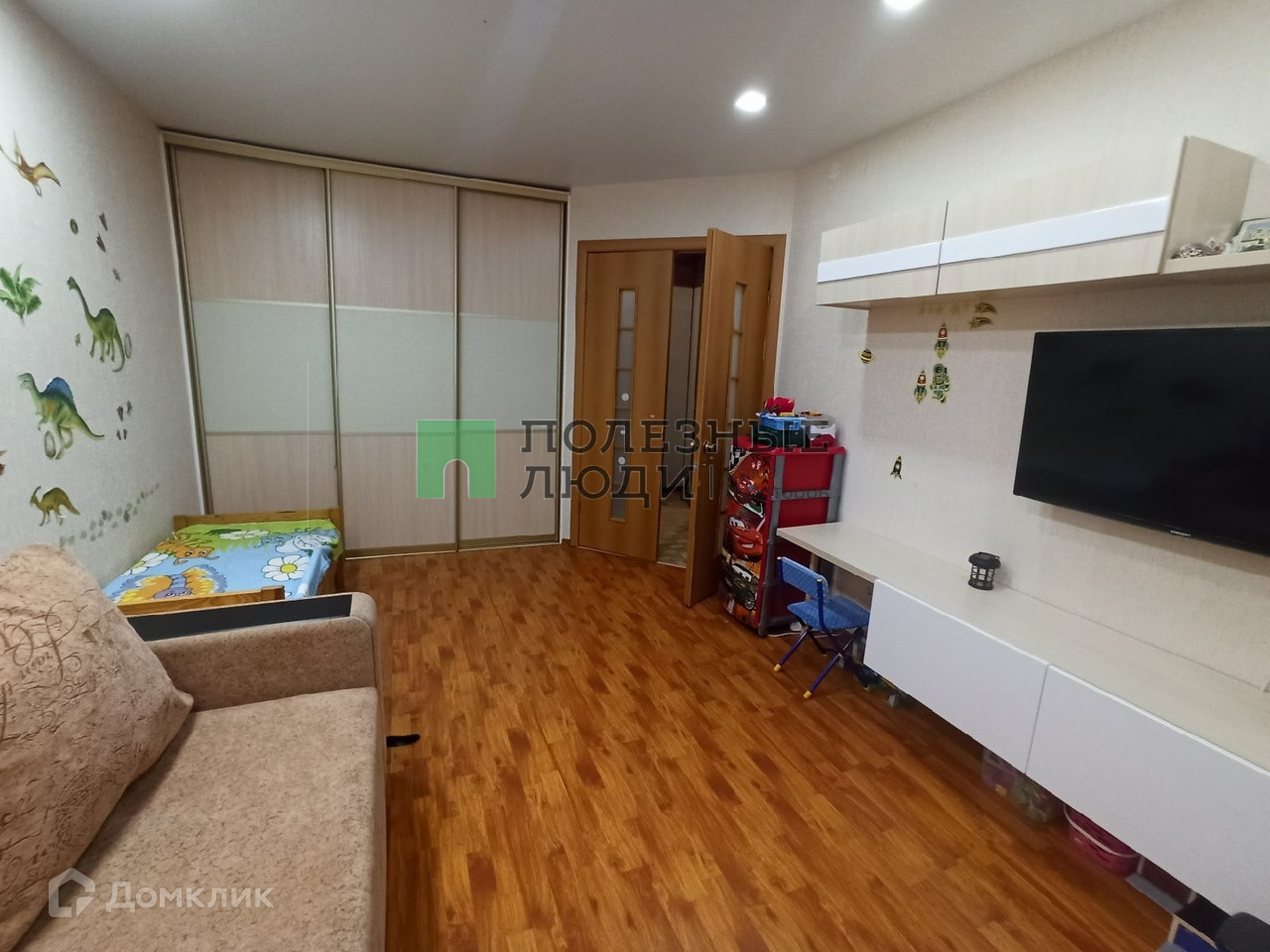 Светлая комната 16,6 кв.м., в которой установлен вместительный шкаф-купе.