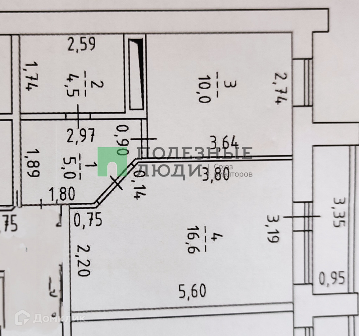 Жилая площадь 16.6 м2