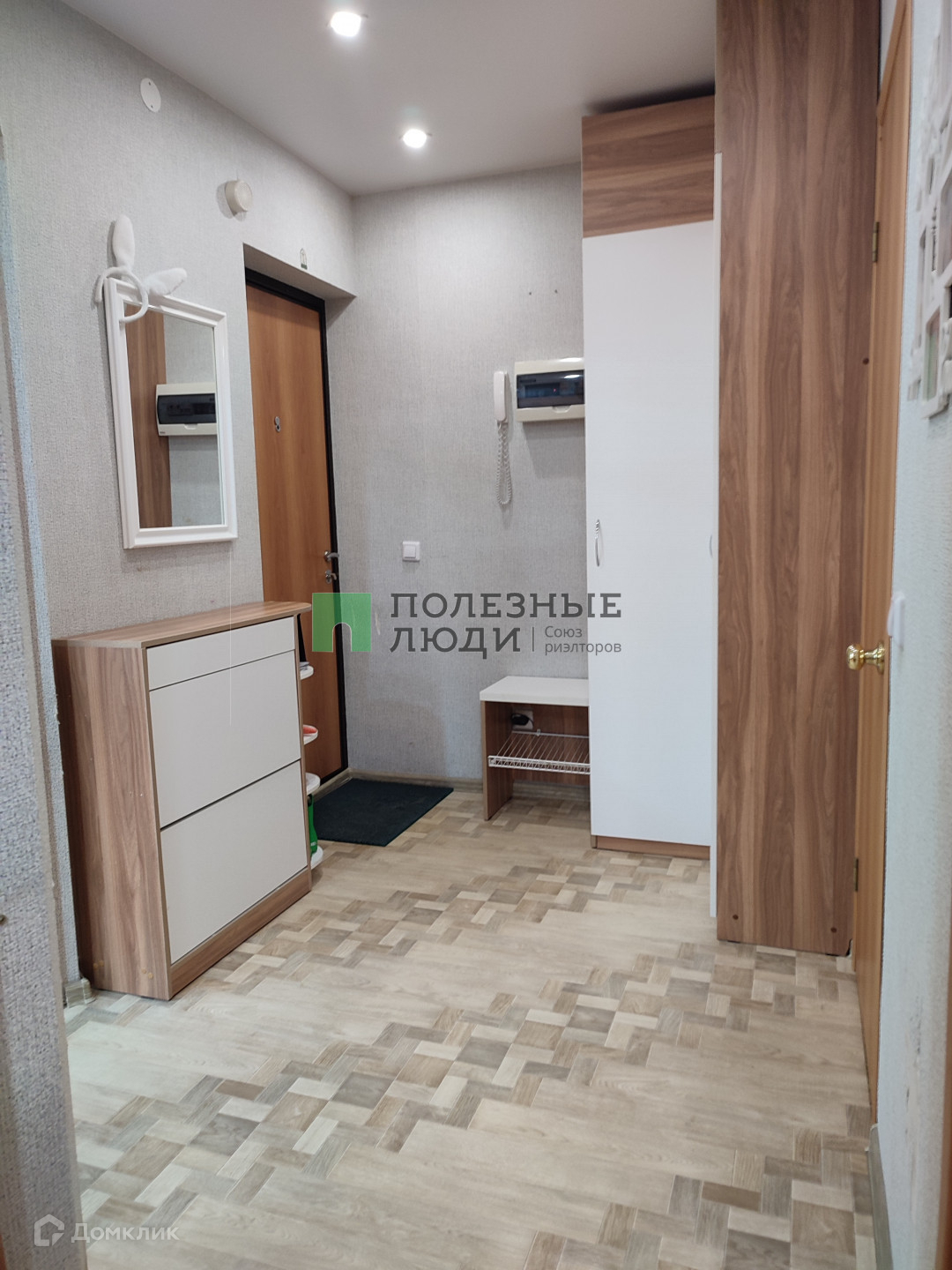 Прихожая с функциональной мебелью, много места для хранения.