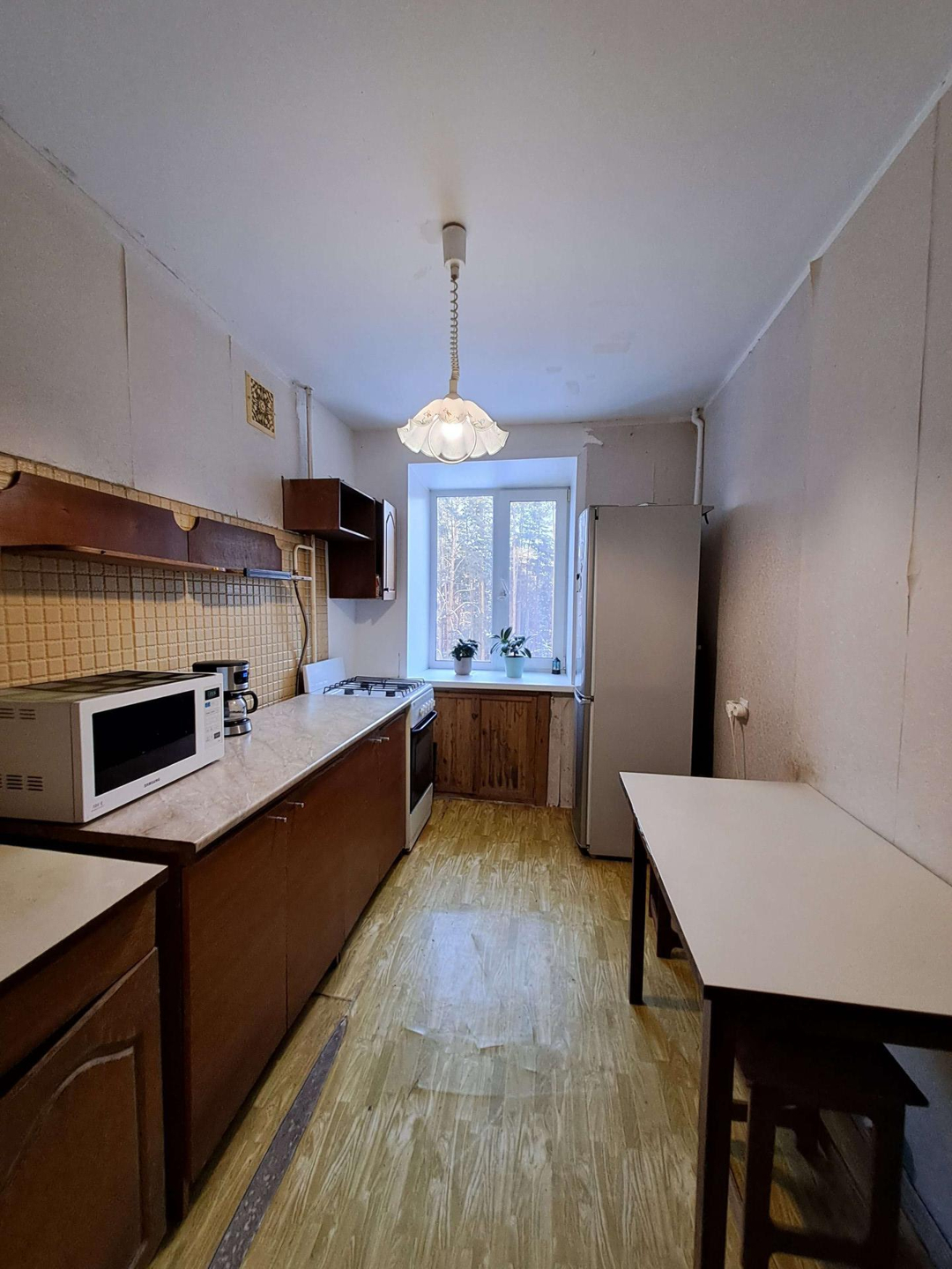 Продаётся просторная двухкомнатная квартира в экологически чистом районе . Дом находится в сосновом бору . Остановка электрички "Обсерватория" автобусная остановка около дома.