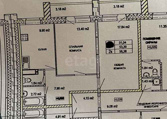 Общая площадь 56.38 м2