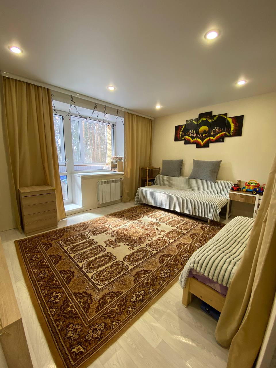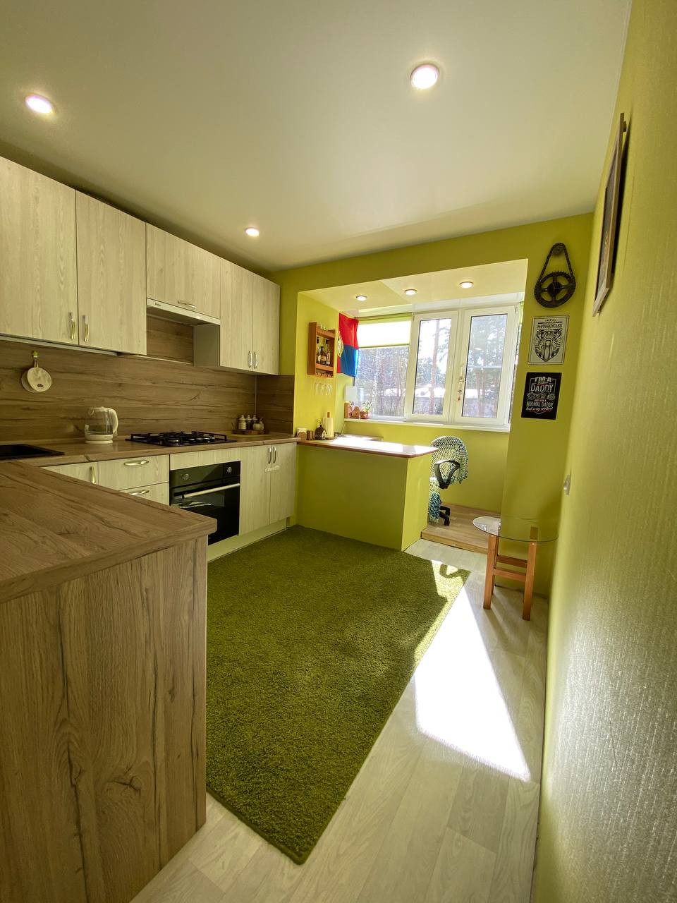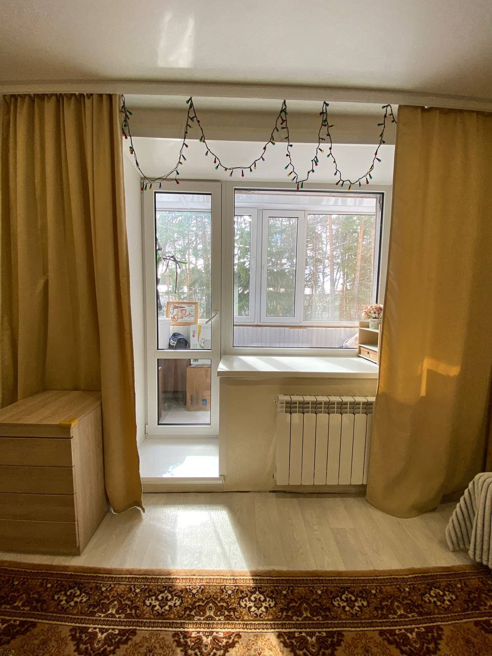 Большая и просторная кухня с утепленной лоджией. За счет этого общая площадь кухни стала 12.5 кв.м.! В зале так же утепленная лоджия со спальным местом! Все окна выходят на солнечную сторону, очень светлая квартира с видом на сосновый бор! Во в дворе вокруг лес с чистейшим воздухом. Парковочные места всегда есть. Так же в доме есть своя кладовая.
