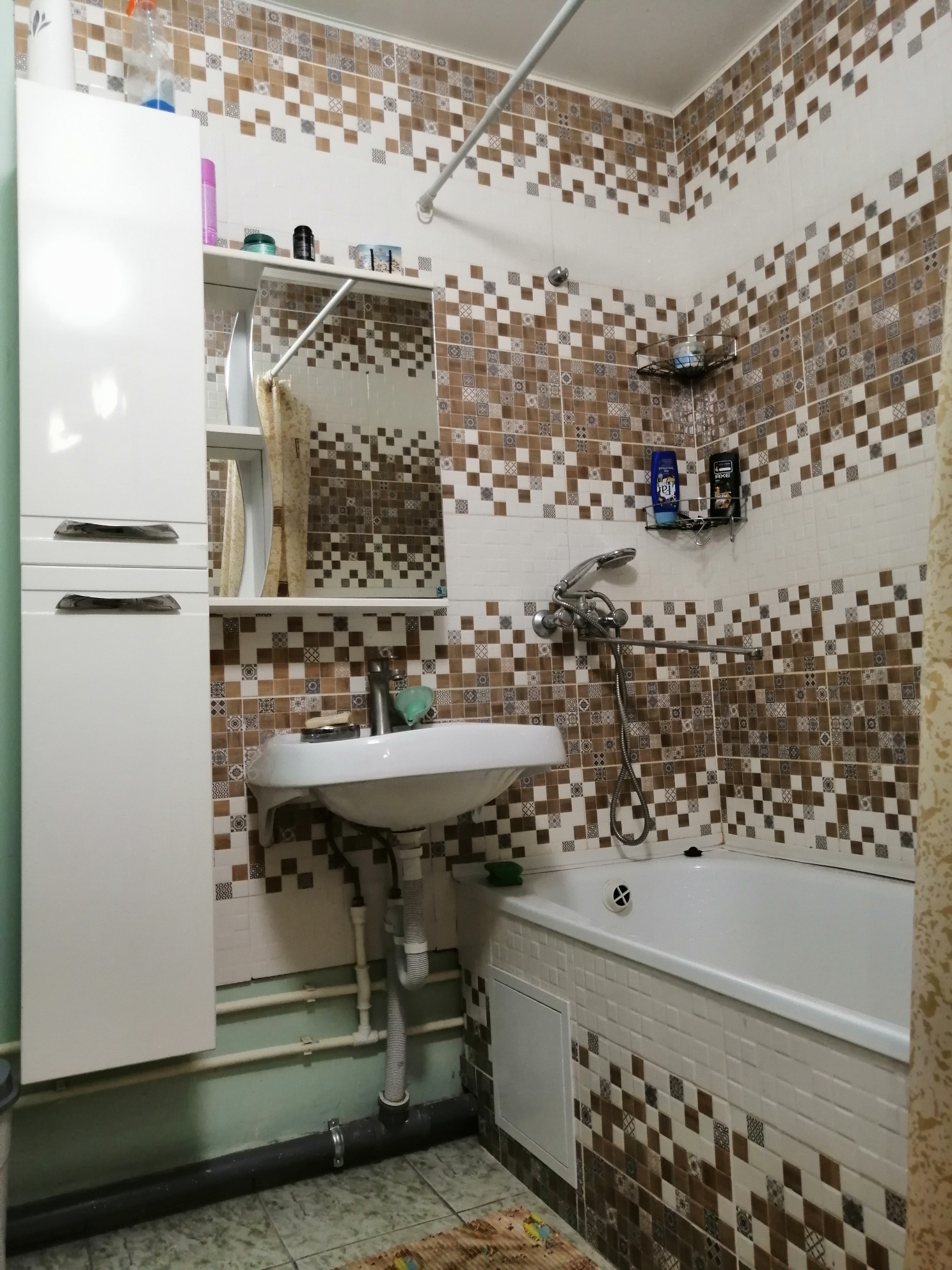 Санузел совмещенный. Частично в плитке.