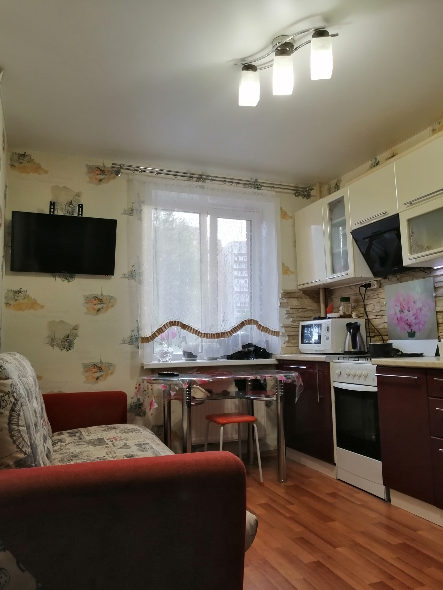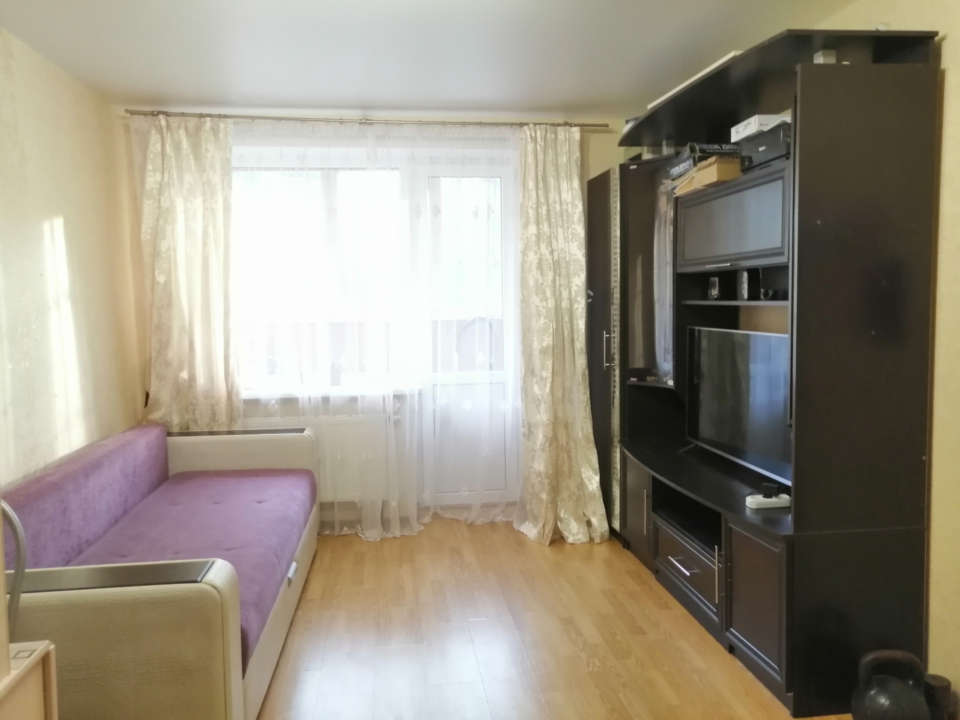 Окна пластиковые , потолки натяжные. Пол – ламинат.