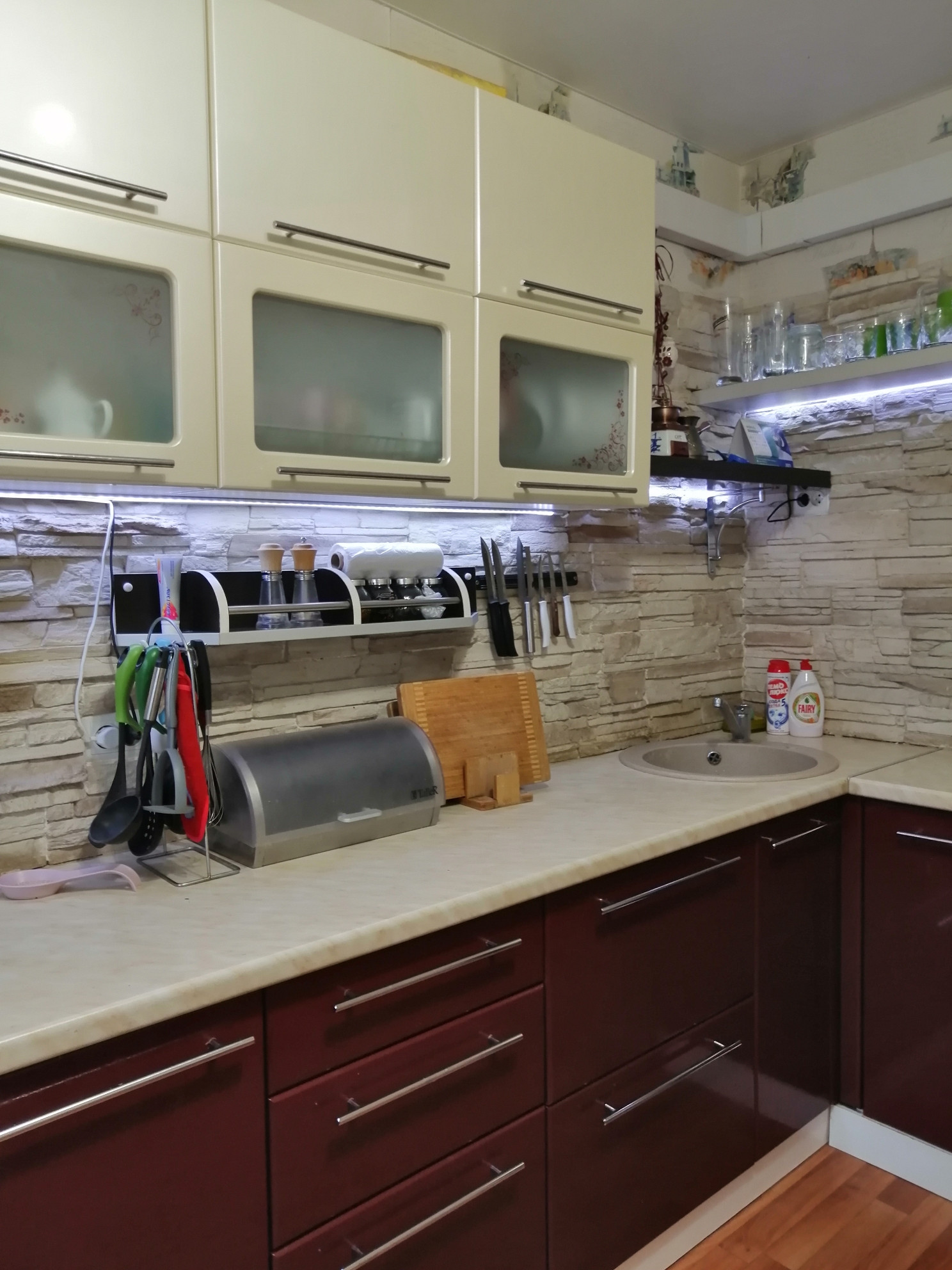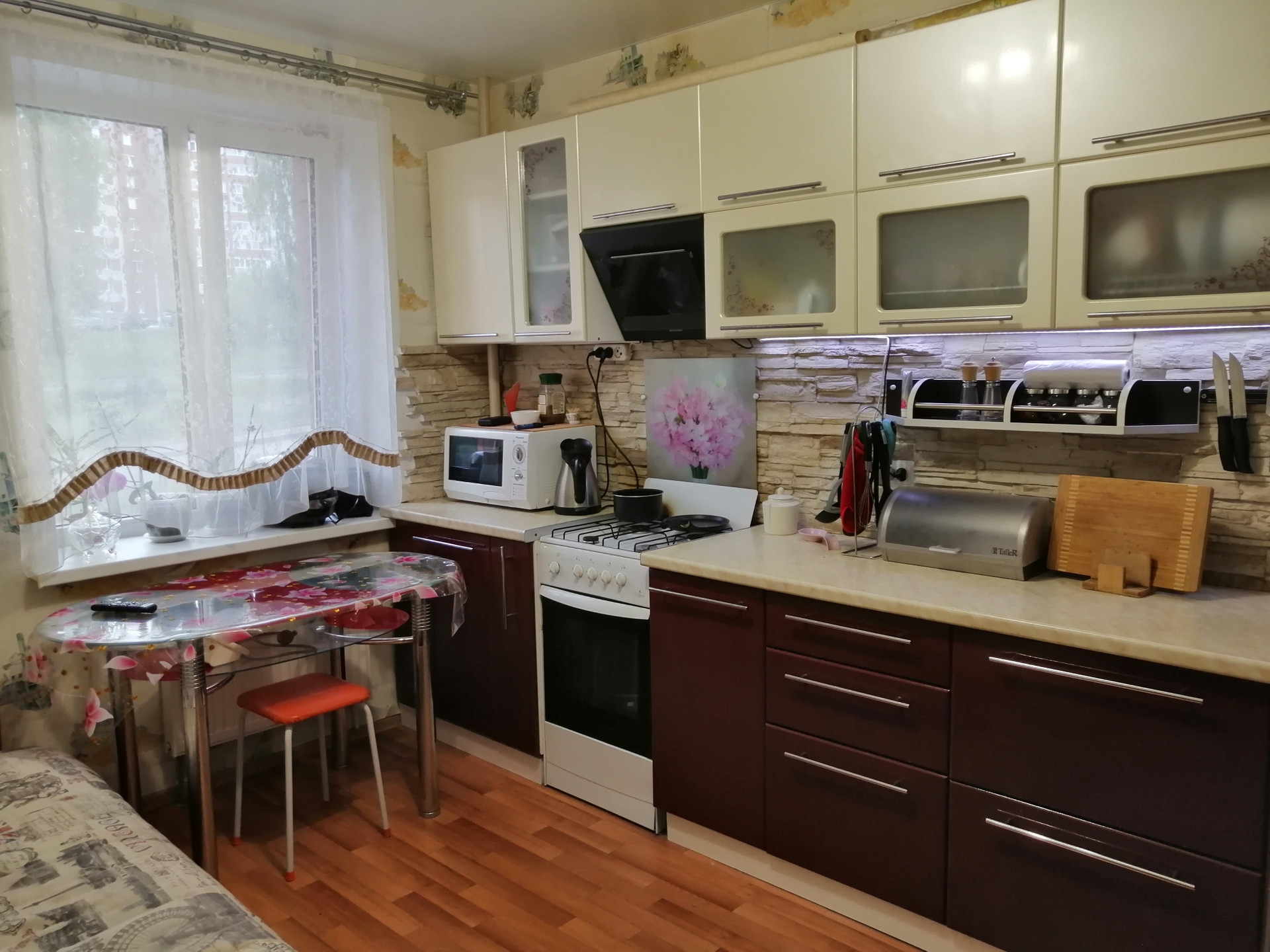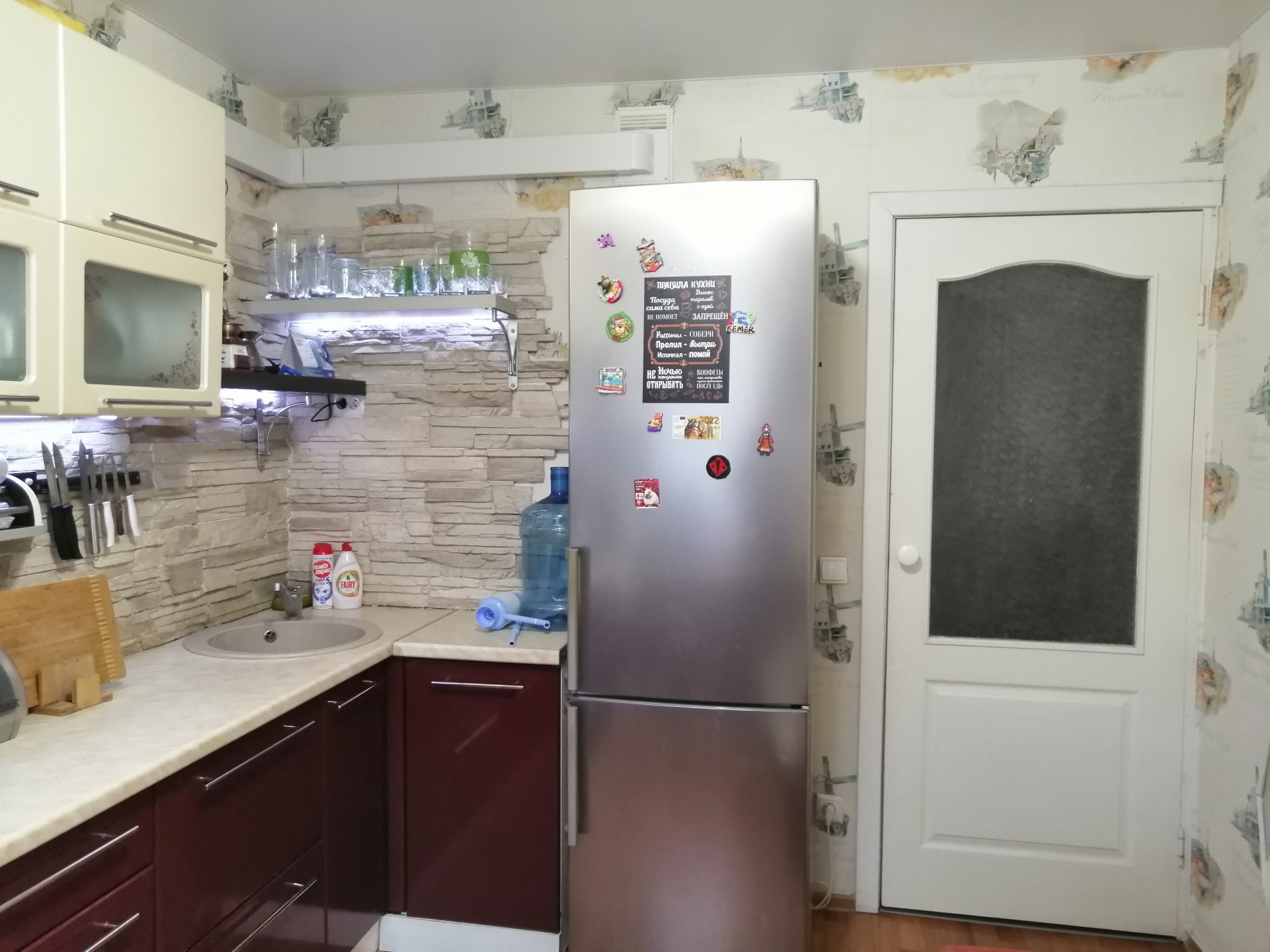 Кухонный гарнитур остается в подарок новому хозяину.