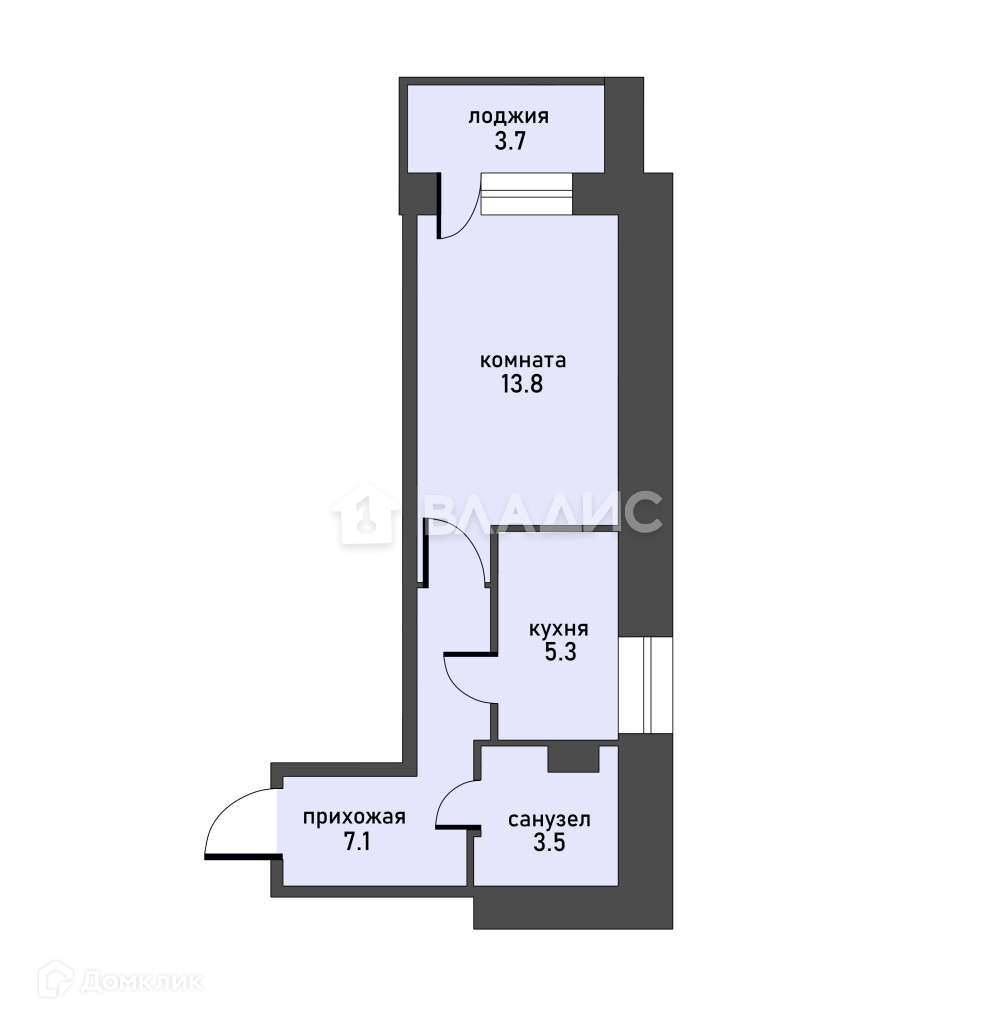 Общая площадь 29.7 м2