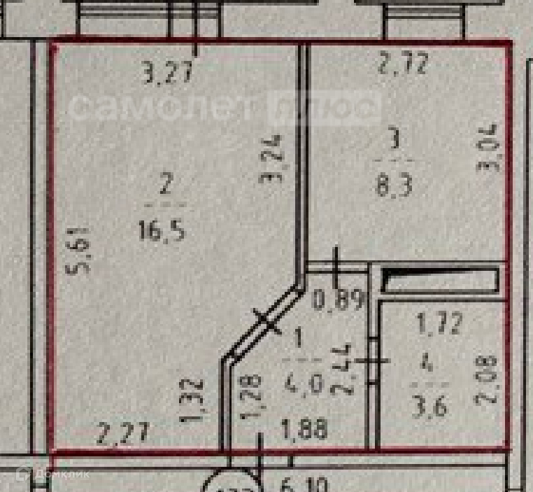 Жилая площадь 16.5 м2