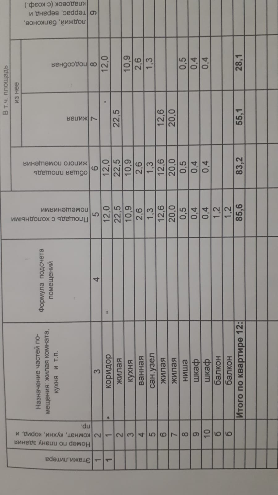 Жилая площадь 55.1 м2