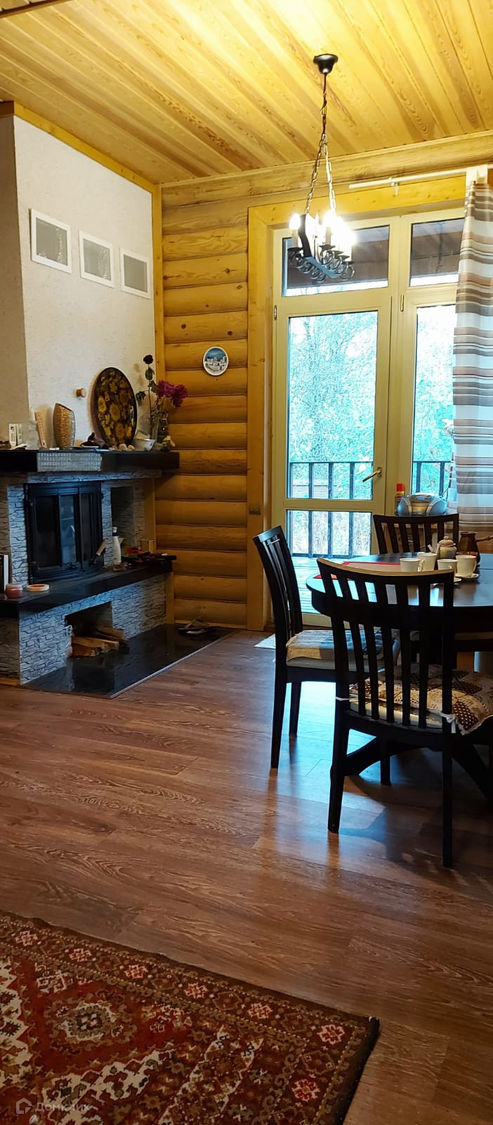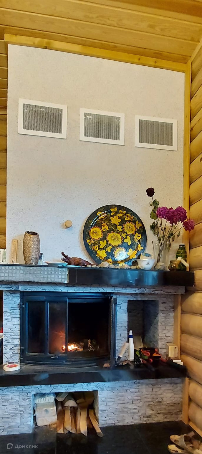 Стоит шведская кассета в камине, отапливается 2 этажа, он очень экономичный и долго держит тепло, плюс теплые полы и масляные электрические батареи, вверху и внизу стоят два инфракрасных отопителя на потолках.