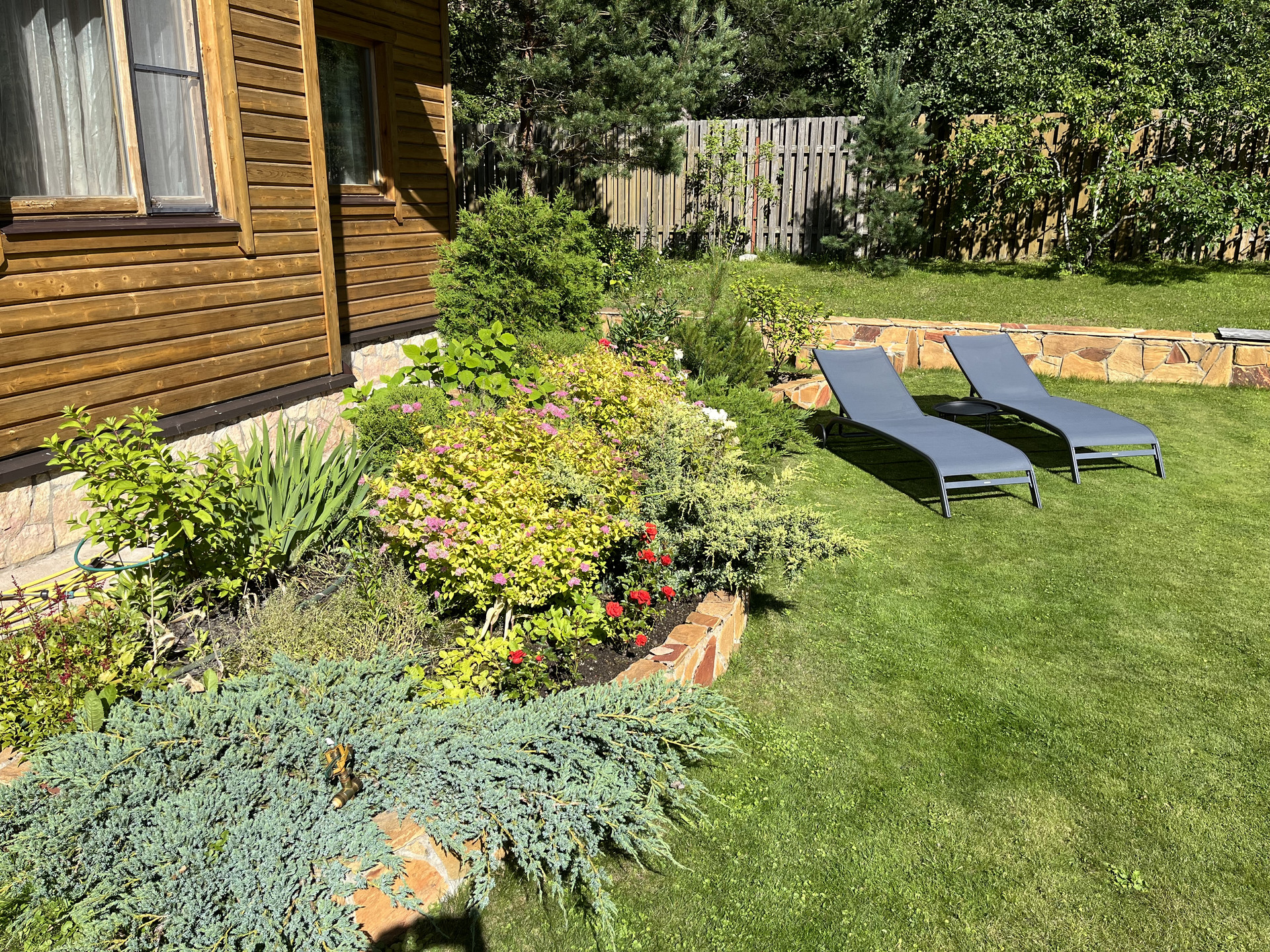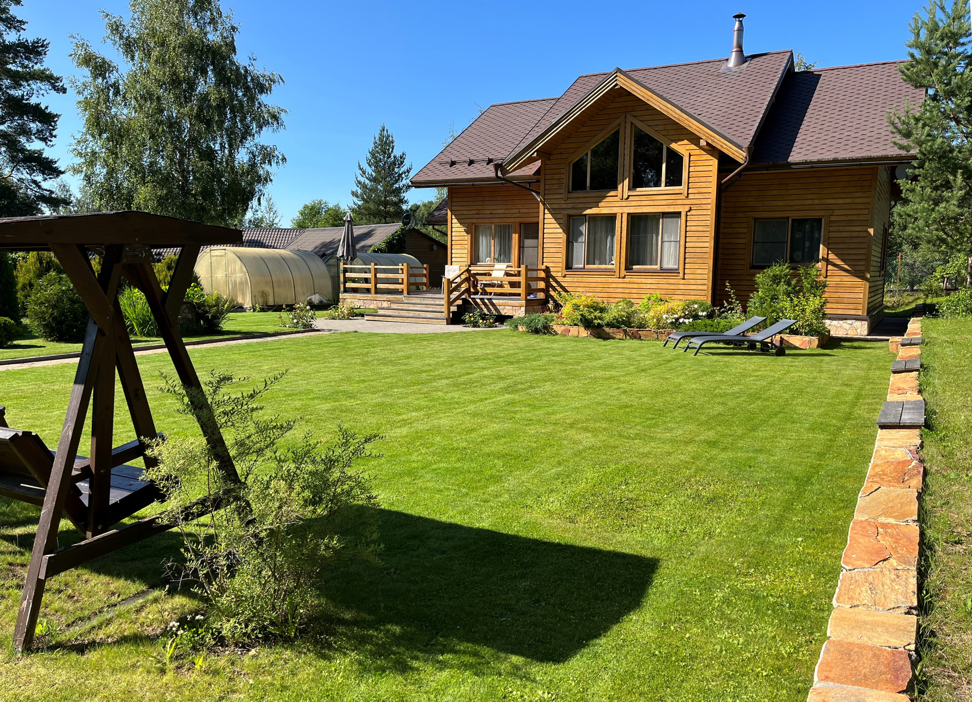 На участке выполнены ландшафтные работы, есть несколько плодовых деревьев и парники.