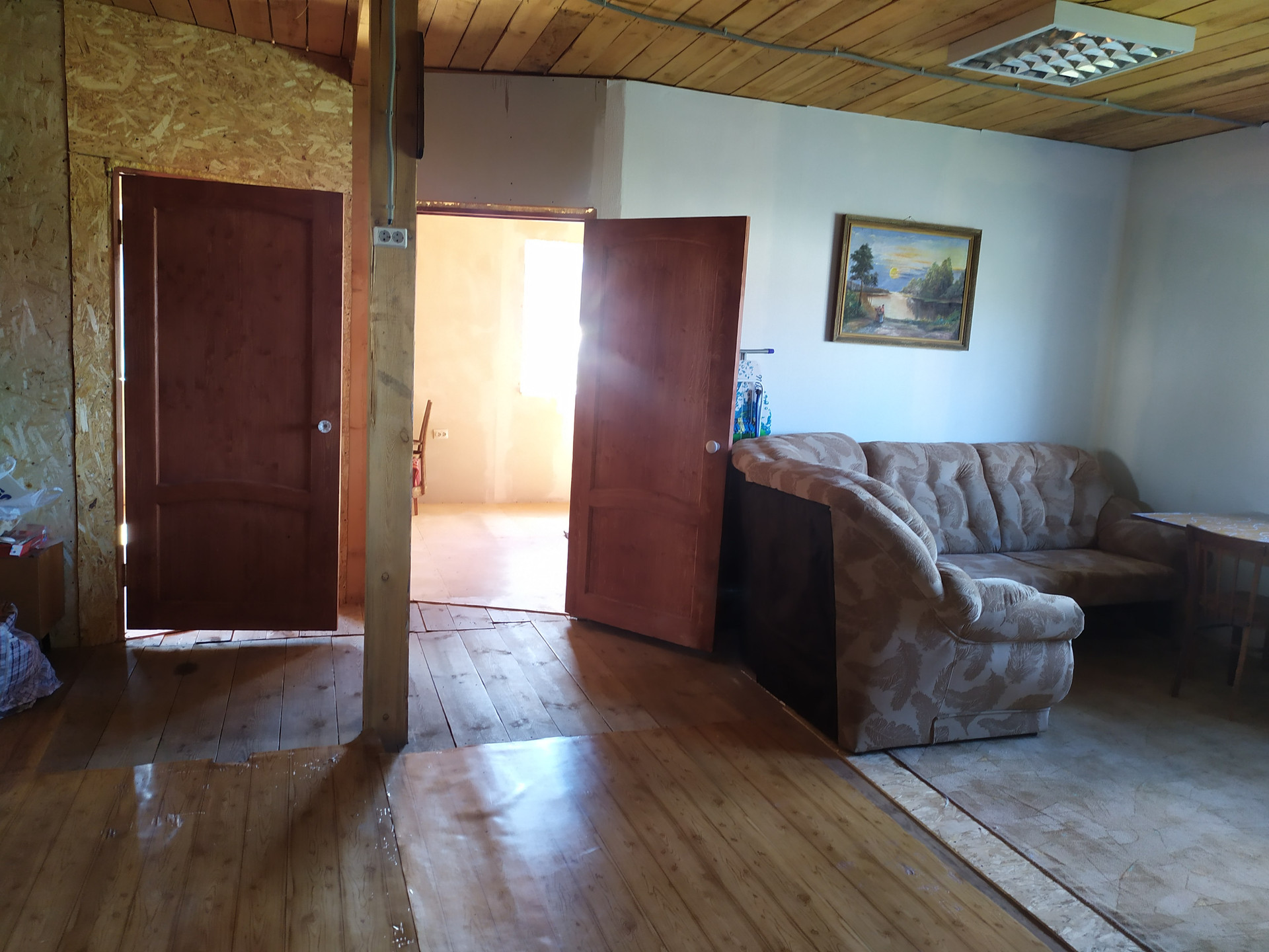 3 комнаты изолированы, кухня- студия, комфортная планировка дома.Санузел совмещен, установлена душевая кабина. Вода в дом и баню подается  насосом из колодца, вода питьевая, не нуждается в очистке. Колодец из 8 колец, участок огорожен забором из профнастила. Есть возможность обустроить комнаты на втором этаже, определено место для лестницы на второй этаж.На участке построена новая баня с зоной отдыха ,вместительный гараж,теплица,летний душ . В коттеджном поселке ведется активное строительство жилых домов. В шаговой доступности магазины, школа, дет.сад. Экологически чистый район, удобное место для проживания от городской суеты. Коттеджный поселок   газифицирован. Звоните, отвечу на все вопросы и покажем в удобное Вам время.