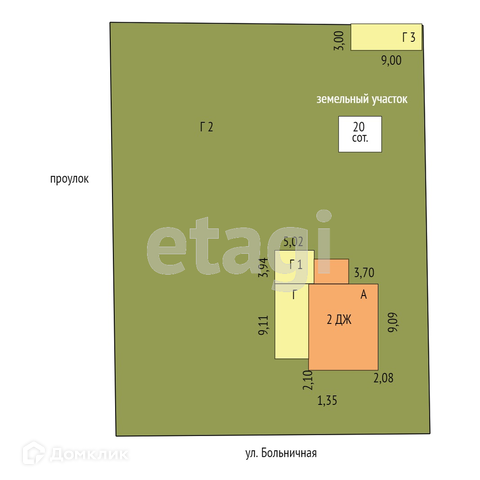 Площадь участка 20 сот.