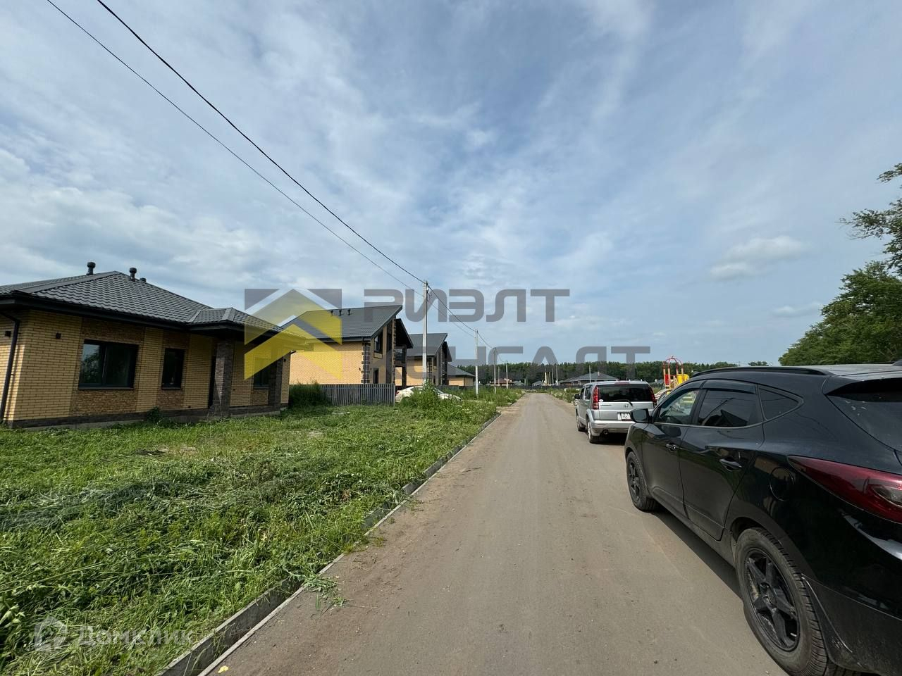 Закрытая территория, въезд через шлагбаум. Дорога заасфальтирована. Рядом с домом березовая роща.