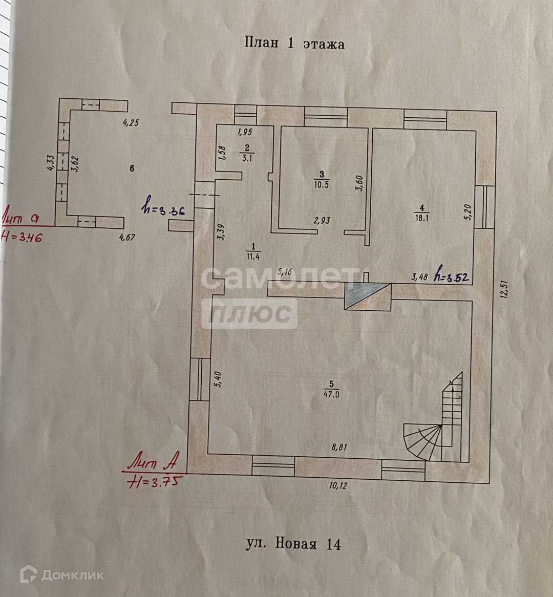 Высота потолков 3.52 м