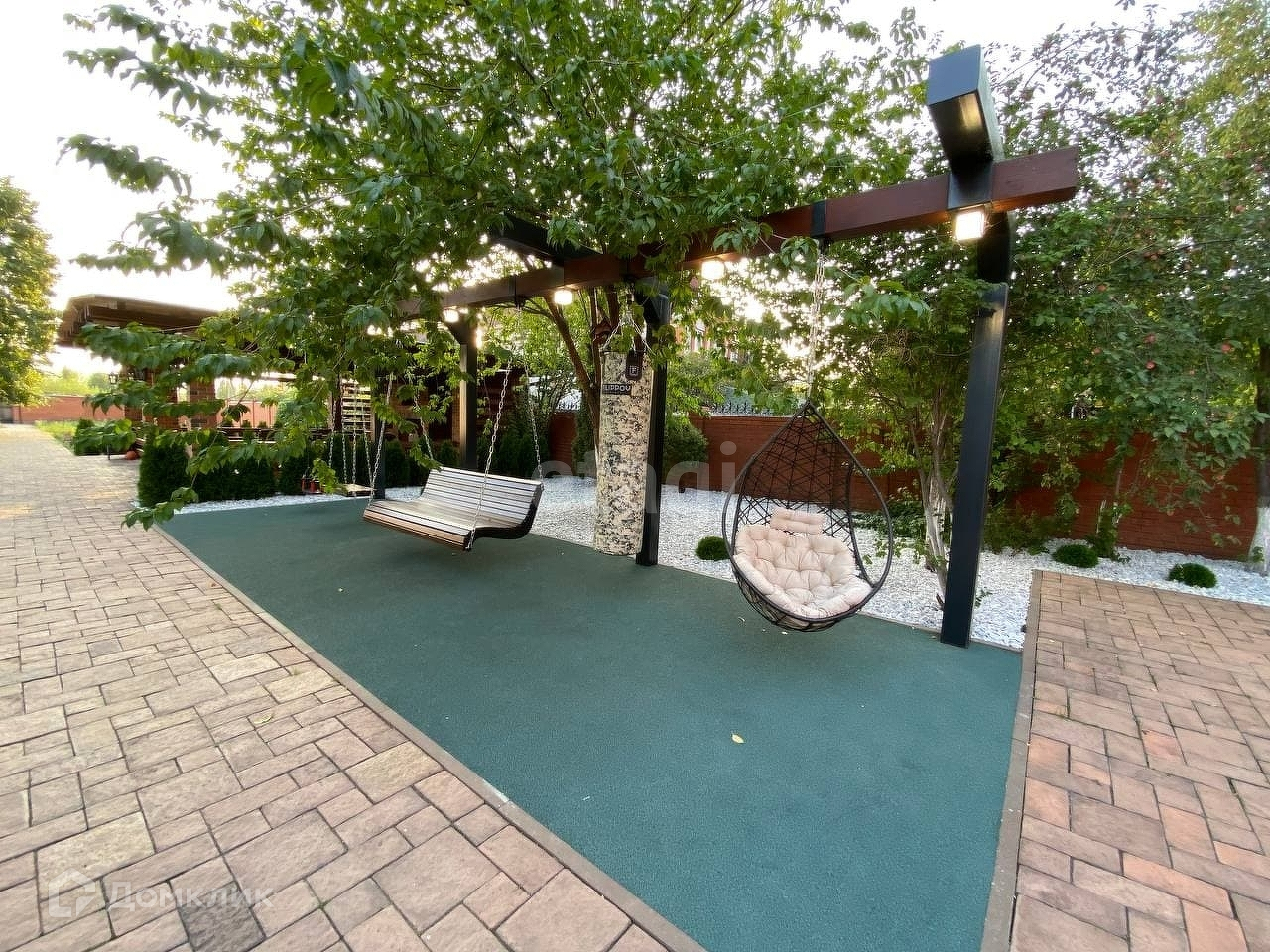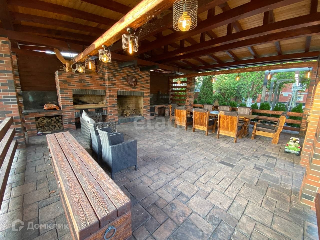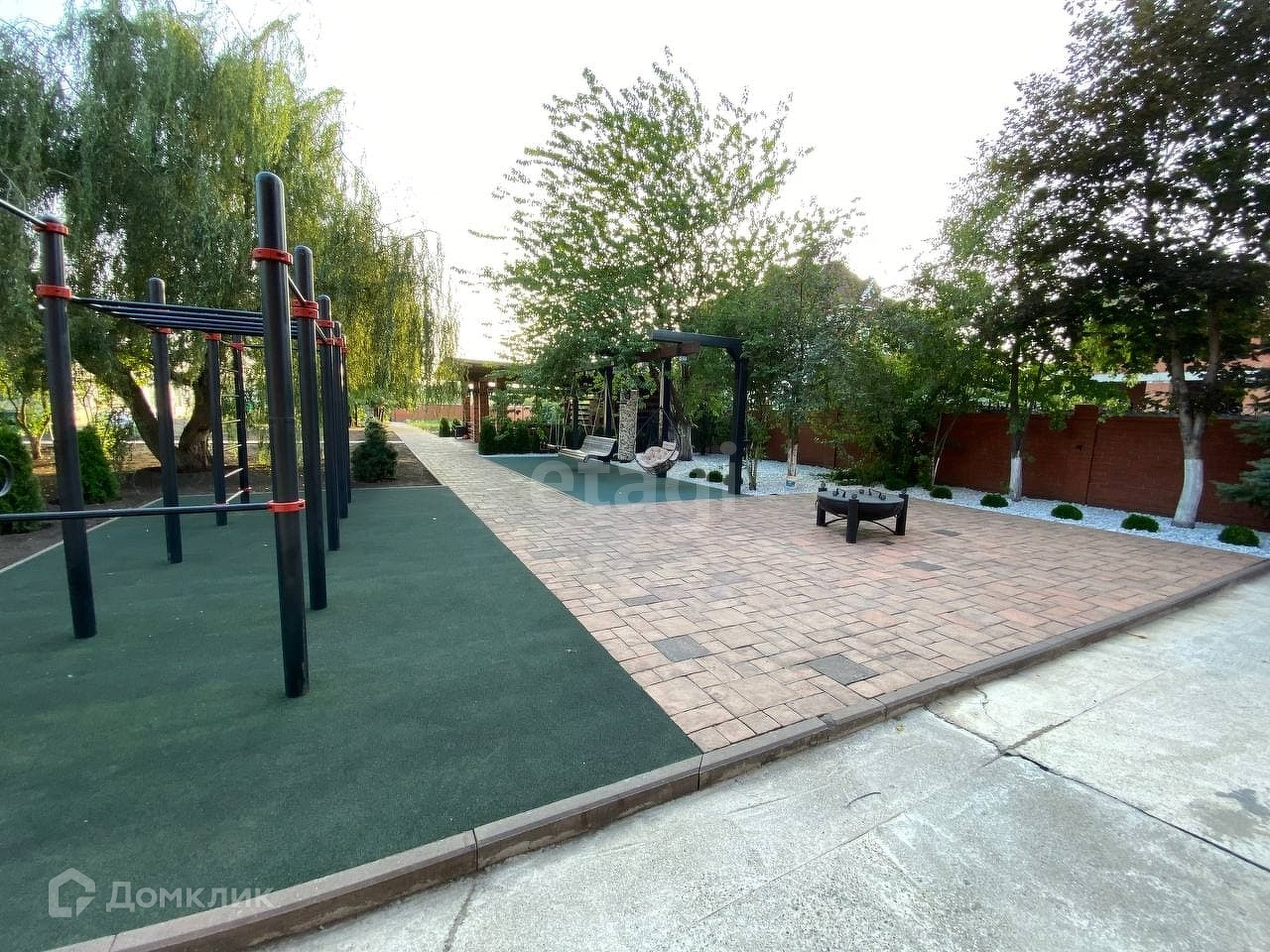 Общая территория земельных участков 5 318 кв.м. Двор полностью благоустроен, посажены плодовые и хвойные деревья редких пород, отдельная зона барбекю, площадка для отдыха и занятий спортом. На территории располагается большая летняя беседка 60 кв.м, хозяйственные постройки для ведения хозяйства.