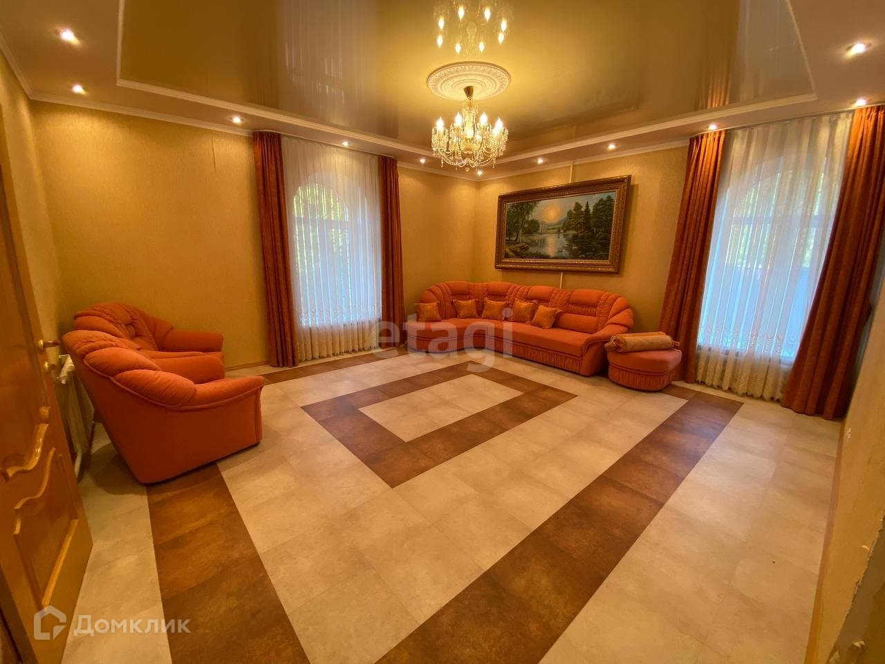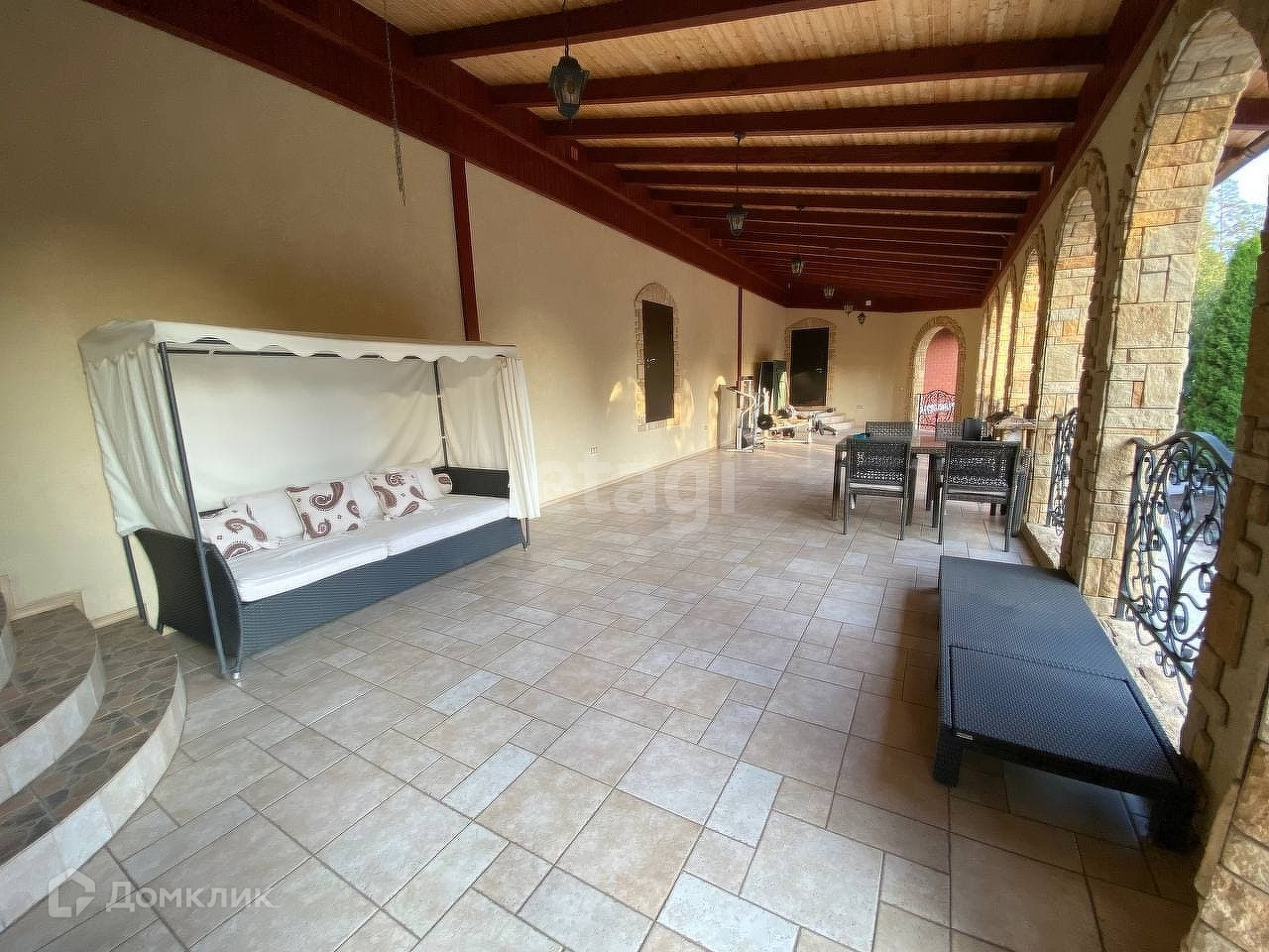 С благоустроенной садовой территорией, состоящий из 2х самостоятельных частей по 550 кв.м с отдельным входом, в закрытом поселке Опушка с ограниченным въездом в 10 км. от города. В коттеджном посёлке свежеуложенный асфальт, 2 улицы, с одной стороны берег Камы и пляж, с другой Боровецкий лес.