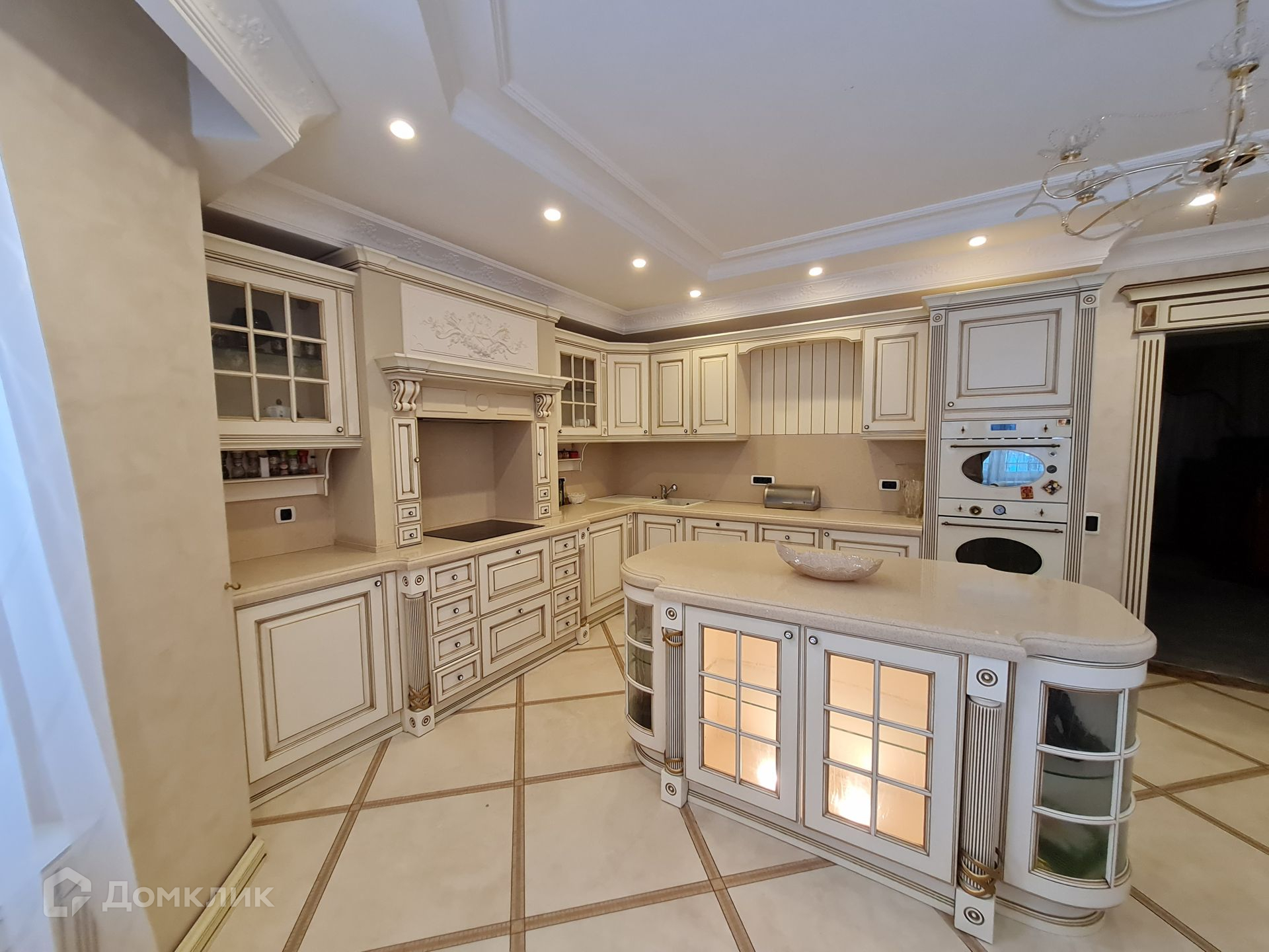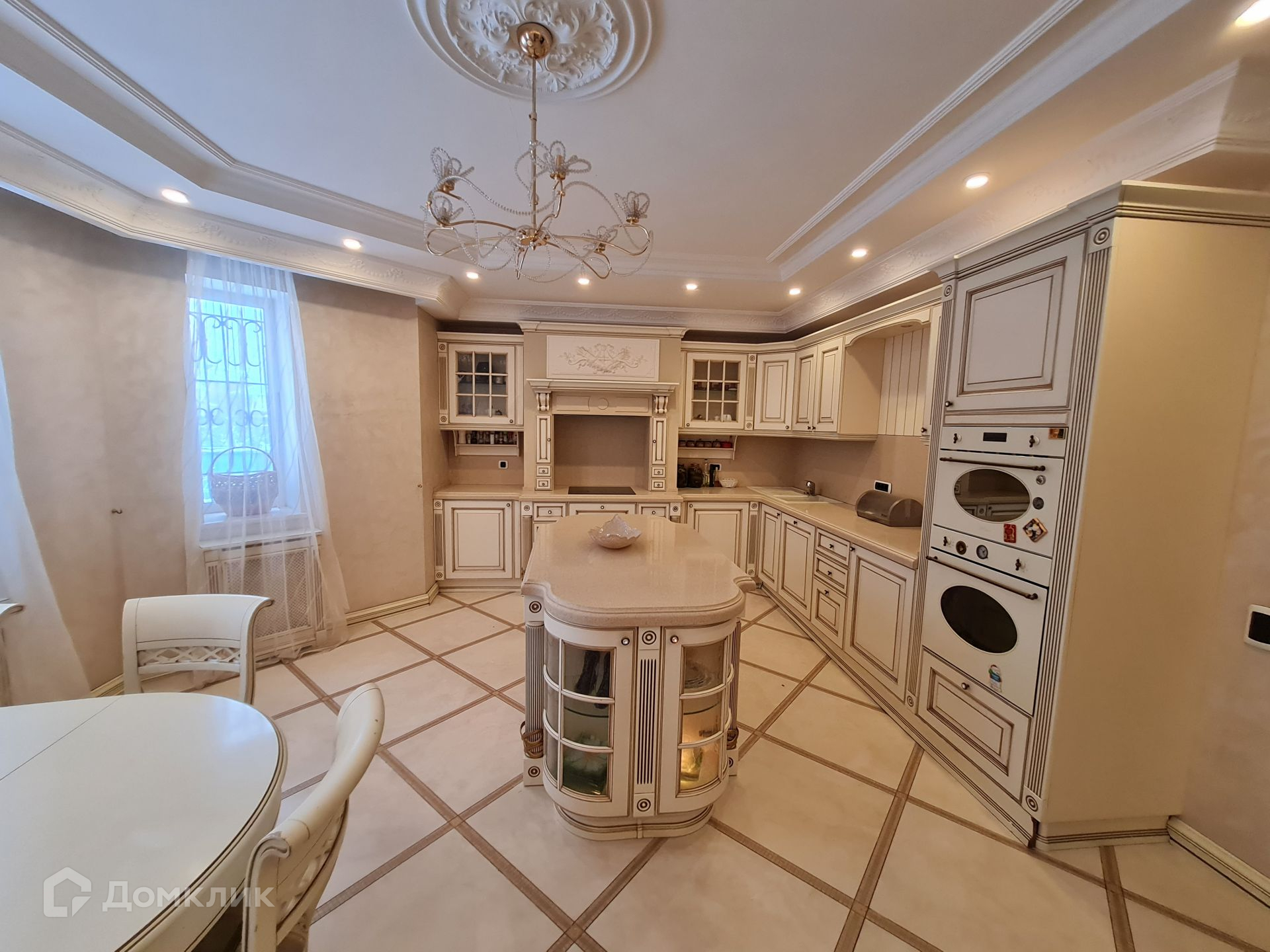 Внутренняя отделка дома выполнена в одном стиле: паркетные полы, декоративная штукатурка, панно и лепнина, везде мраморные подоконники, итальянская мебель и сантехника, кухня полностью укомплектована техникой Smeg.