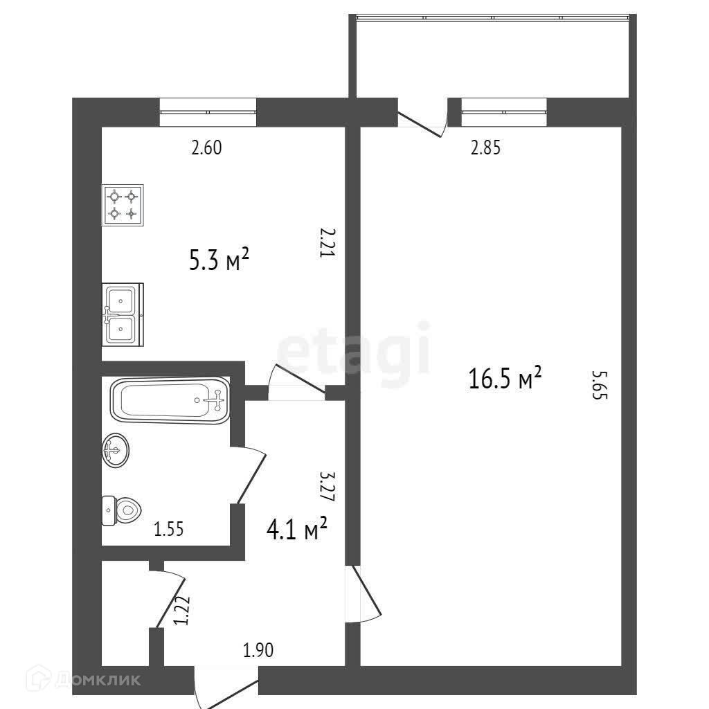 Общая площадь 29.5 м2