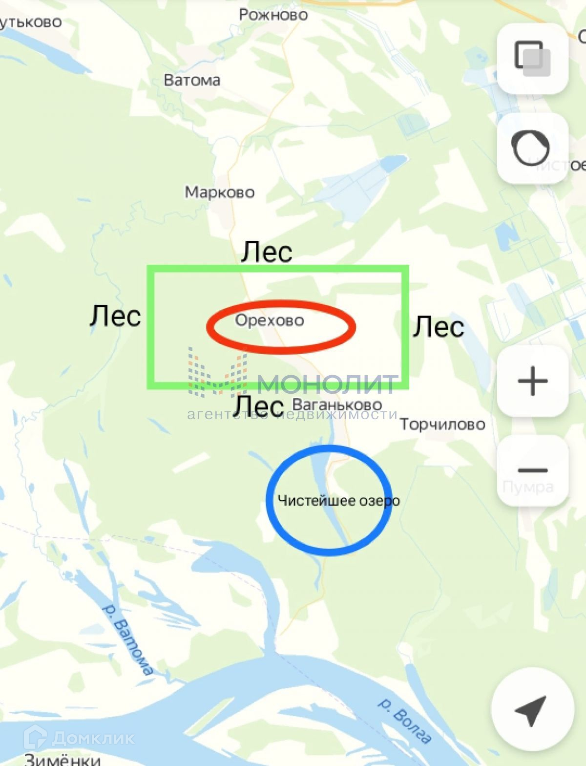 В 2 км от участка чистейшее Ваганьковское озеро, 2 км до 2 магазинов в соседних деревнях, 3 раза в неделю приезжает автолавка с продуктами и промтоварами по доступным ценам. Вокруг деревни леса. Участок неподалеку от остановки общественного транспорта, 23 км от г. Бор, 30 км от Нижнего Новгорода. Асфальтированная дорога до участка. В деревне местные фермеры выращивают кур, коз, коров и Вы можете приобрести органические продукты, которых не найдешь в городских магазинах!