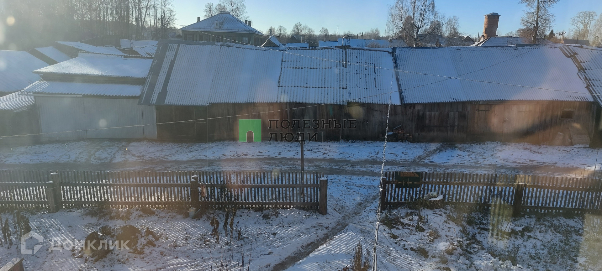 Территория двора огорожена забором.