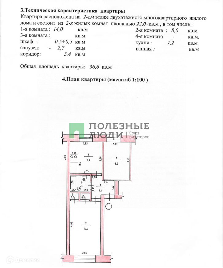Общая площадь 36.6 м2