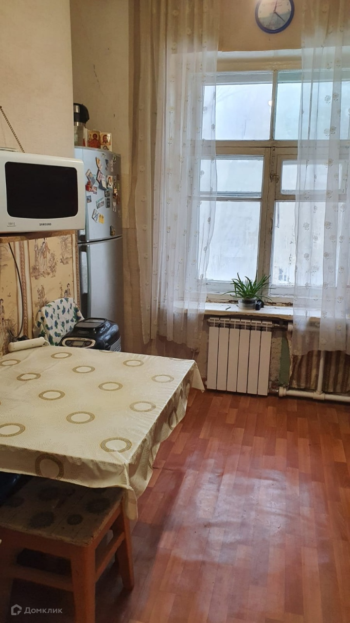 Квартира расположена на 3 этаже 4 этажного  кирпичного дома, это «сталинка», 1936 года постройки, высота помещения 3 метра; в здании частично производился  капитальный ремонт: поменяны трубы, отопительные приборы. Отопление центральное, вода тоже (чистая питьевая ) Горячая вода подаётся через бойлер, сан. узел раздельный.