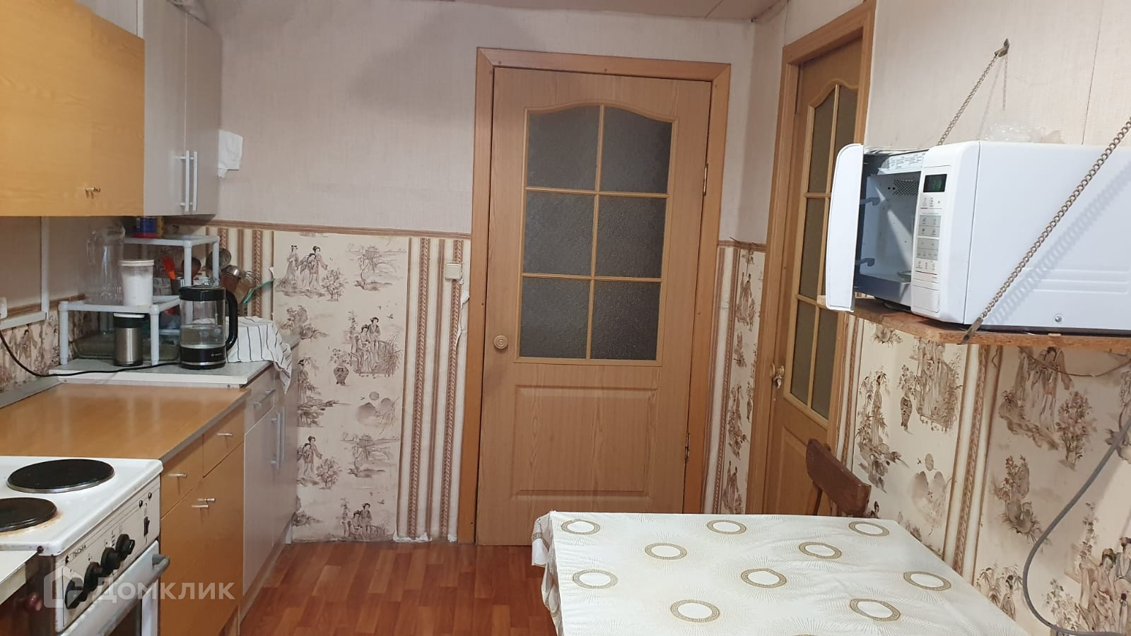 В комнате выполнен ремонт: чистенько, аккуратно, пластиковое окно, натяжной потолок, на полу ламинат, новая мебель. По всей квартире поменяна проводка.