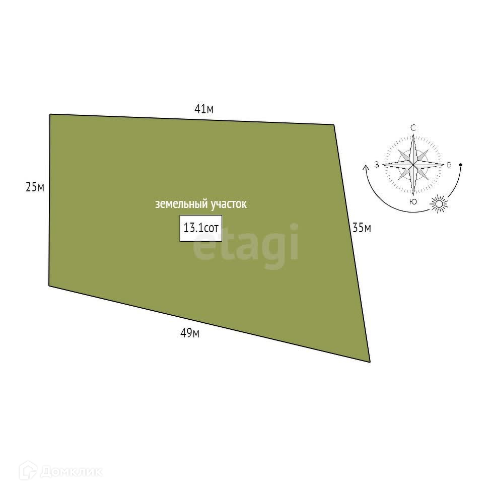 Площадь участка 13.1 сот.