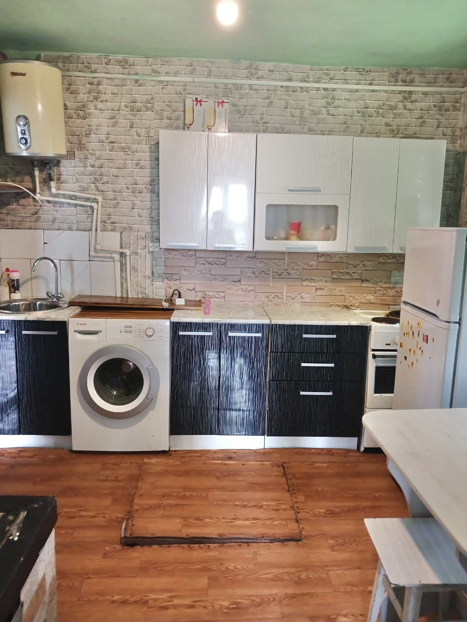 В доме сделан косметический ремонт, пластиковые окна. Во всем доме так же остаётся вся мебель, кухонный гарнитур, обеденная зона, двухспальная кровать, 2 дивана и шкафы, так же остаётся техника: стиральная машина автомат, холодильник, водонагреватель, все в хорошем состоянии.