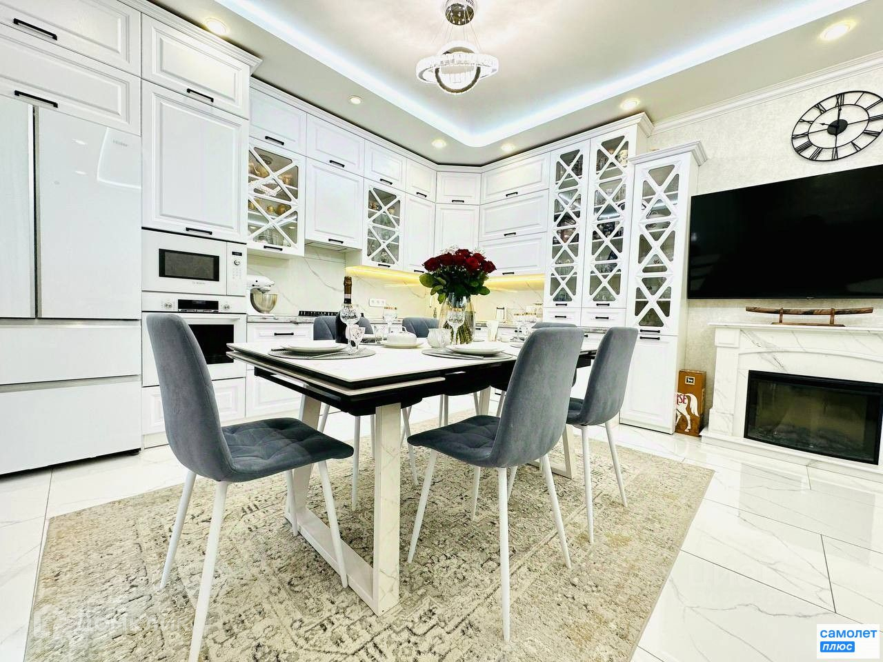Вся мебель и техника на фото остаются. Кухня оборудована всем необходимым для комфорта хозяйки-холодильник Haier, встроенный духовой шкаф, газовая плита ,микроволновка и посудомоечная машина фирмы Bosch, вытяжка. В доме 4 плазменных телевизора, 3 инверторные сплит-системы+ 1 стандартная, стиральная машина Samsung. Состояние мебели и техники-отличное, практически новое.