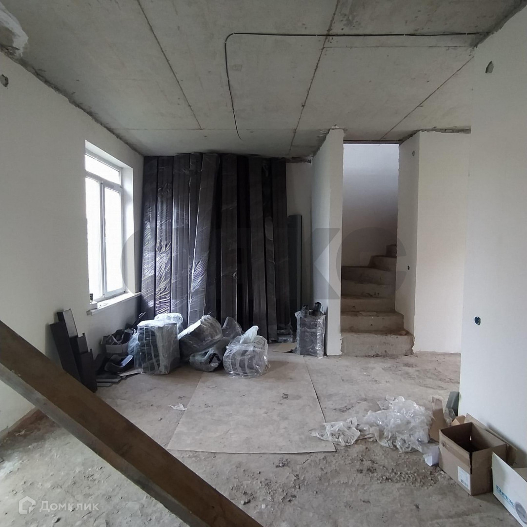 Монолитное перекрытие меду этажами, лестница бетонная, высокие потолки.