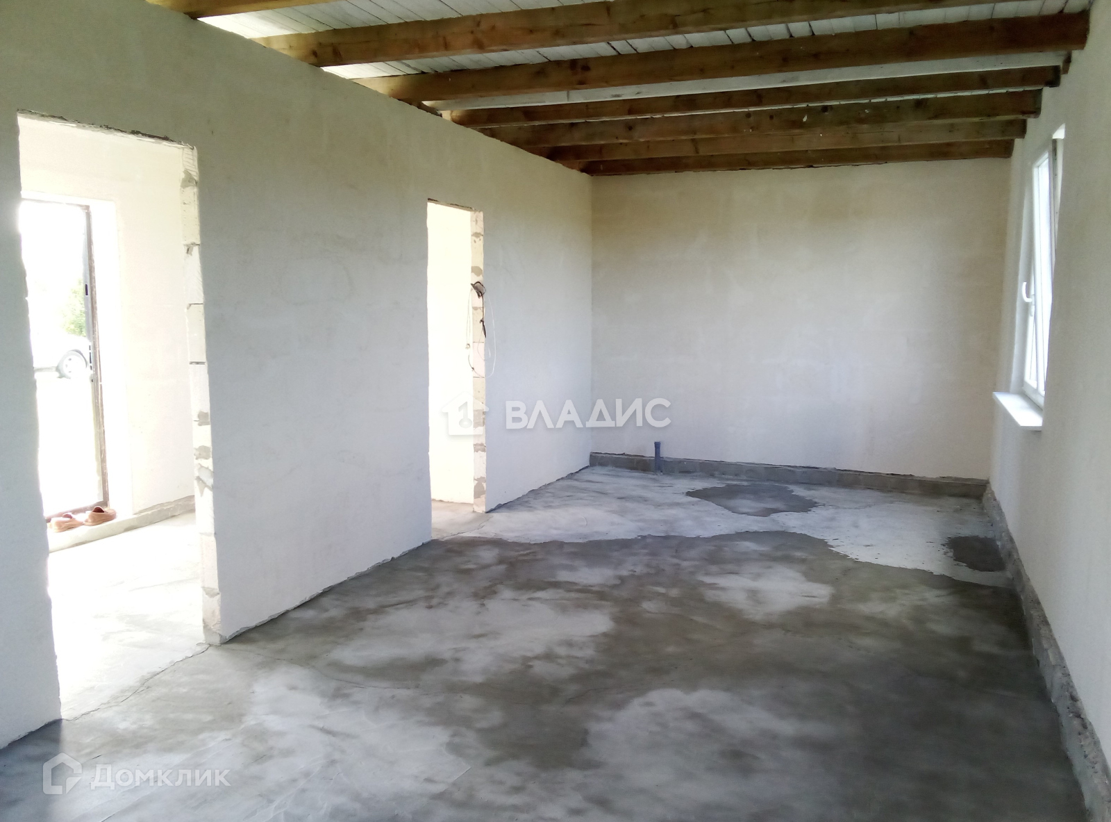 Дом на ленточном фундаменте и плите. Материал стен – газосиликатные блоки, фасад утеплен и оштукатурен декоративной штукатуркой, внутренние стены оштукатурены, крыша металлочерепица, стеклопакеты, межэтажное перекрытие – деревянное, разведена сантехника по первому этажу, сделаны выводы для канализации и водоснабжения.