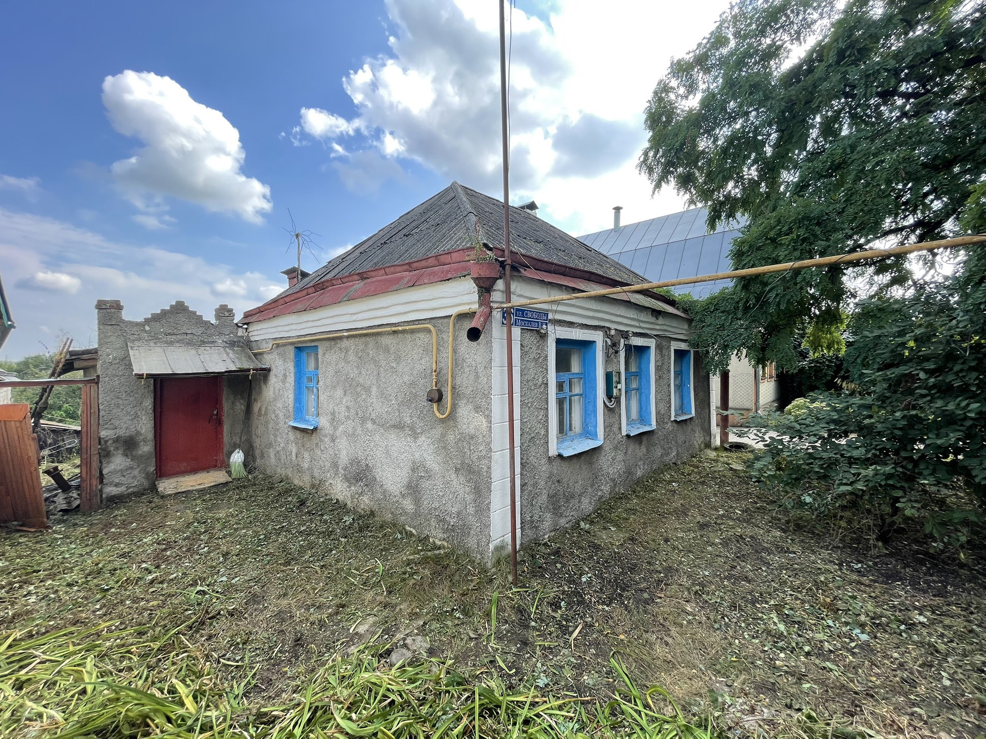 Дом кирпичный, газифицирован, вода, электричество, септик, есть надворные постройки.